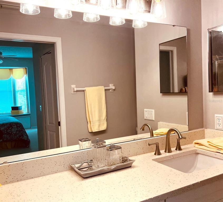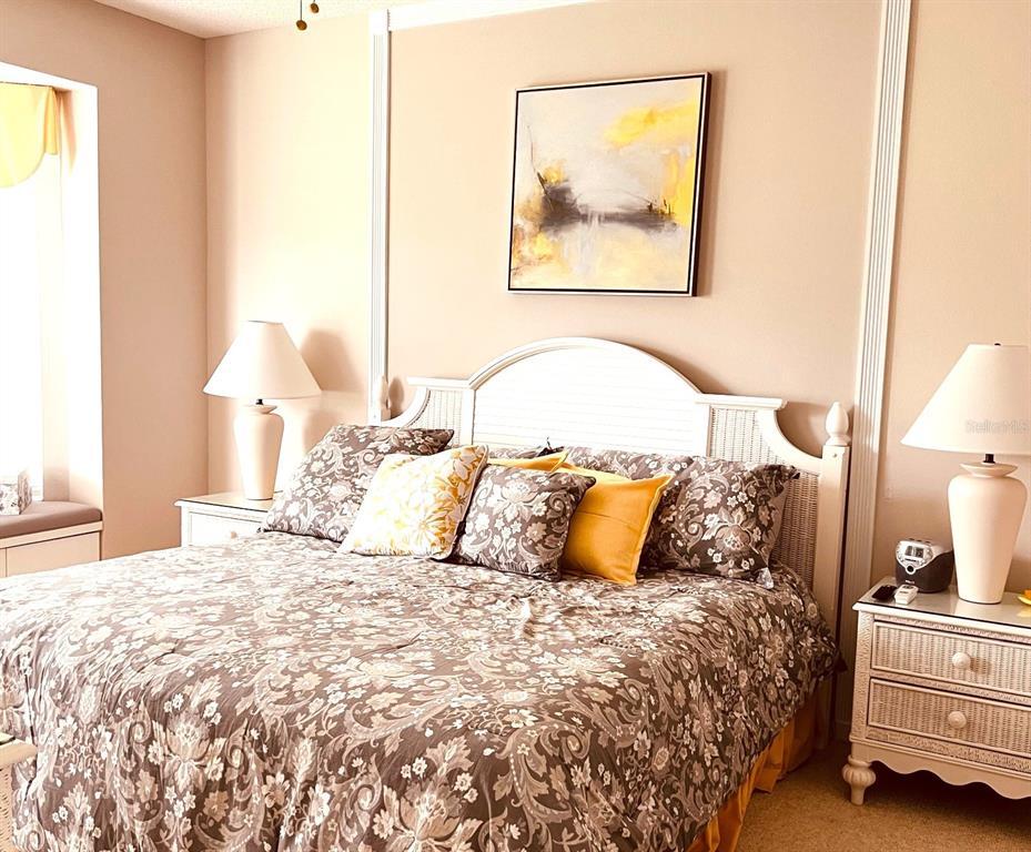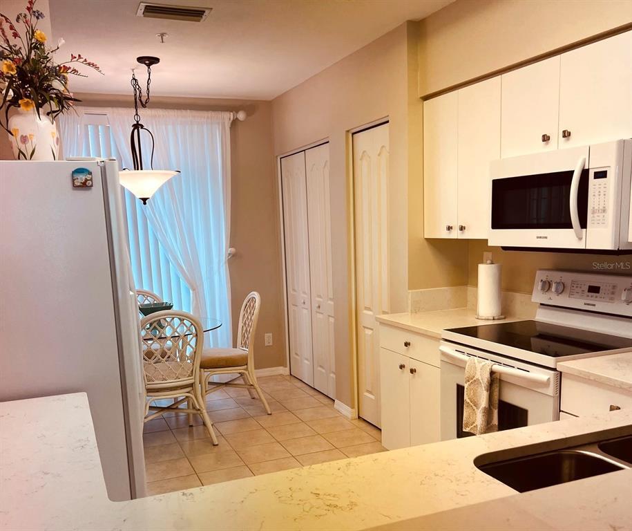 AVAILABLE NOW,GROUND FLOOR VERANDA ON THE GOLF COURSE is bright and cheerful and tastefully decorated and sure to delight,2 bedroom,2 bath with front and rear lanai space - rear lanai is glassed and screened providing extra living space - and there is a one-car garage. King bed in the master bedroom with an adjoining updated bathroom with walk-in shower,queen bed in 2nd bedroom adjacent to a full bathroom. Kitchen with eating space,pantry,quartz countertops,and newer cabinets,is separated from the dining area with a breakfast bar. There is tile in the main living area and carpets in the bedrooms. There is no membership offered with this residence; however,you can dine at the clubhouse and the Fairway Veranda's heated pool is right across from the condo. The complex borders the Legacy walking and biking trail access,is less than 15 minutes from Siesta Key beaches,the village shops and restaurants. You can be downtown Sarasota in 25 minutes to enjoy the culinary and cultural flavors that Sarasota offers. This is a vacation condo that will not disappoint. MLS# A4664283