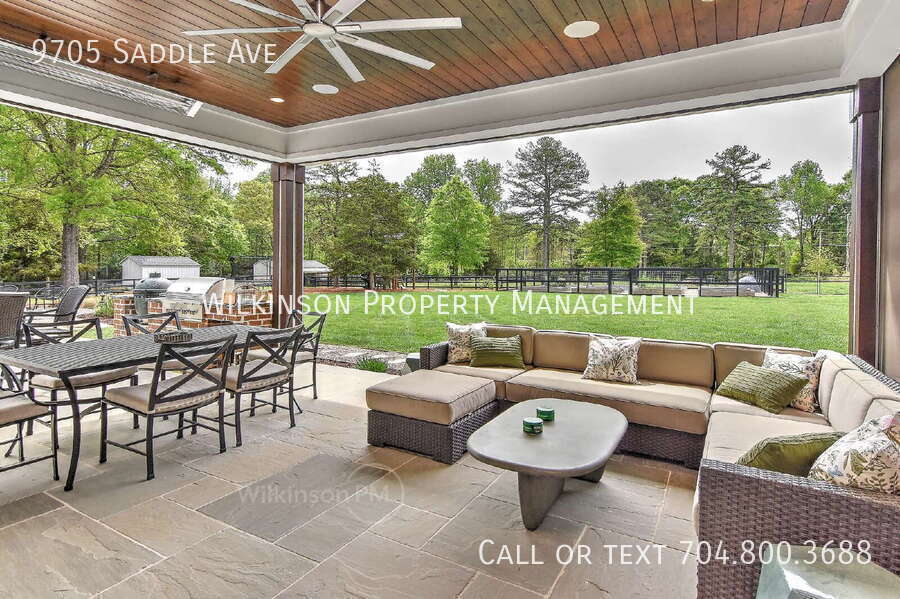 A commanding estate on 2.74 acres of supreme privacy, situated at the end of a quiet lane in Marvin, one of North Carolina's most prestigious enclaves. This modern-day homestead was curated specifically for the discerning C-suite executive, professional athlete, or high-net-worth family who demands a turn-key lifestyle with the warmth and comfort of a homestead for family and friends, while maintaining the highest level of amenities and luxury. From the rocking-chair front porch, backdropped by a striking white board-and-batten exterior, to the bespoke, textural interiors, every square inch has been masterfully designed for high-level entertaining, featuring all of the formals and amenities required at this level of luxury. The Executive Experience & Grand Entertaining Step through solid-wood, glass-paned double doors into a breathtaking foyer defined by painted white brick and wide-plank white oak floors. The open-concept grand living space is an entertainer's dream, anchored by soaring shiplap ceilings, reclaimed architectural beams, and a monumental cast-stone fireplace with herringbone firebox detailing, all flanked by dark metal-and-glass display cabinets. Experience immediate luxury with bespoke furnishings and curated textural layering throughout—including bouclé sofas, woven leather accent chairs, vintage-style rugs, and museum-quality artwork. The Power Office Designed for closing deals and hosting hosting private meetings in absolute style. The moody, dark-paneled executive study is the ultimate remote work/business sanctuary. Featuring floor-to-ceiling built-in cabinetry, brass picture lighting, a massive wooden desk, and a lounge area complete with a leather sofa and vintage bar cart, dripping with power and influence in every detail. The Epicurean Culinary Wing Flawless hosting begins in the spectacular chef's kitchen, wrapped entirely in continuous marble slab. It boasts a professional-grade stainless steel range and a designer brass pot filler. For seamless, out-of-sight catering and prep, the space flows into a highly coveted hidden scullery featuring floor-to-ceiling pearlescent Zellige tile, a secondary farmhouse sink, and a dedicated beverage center. The Professional Athlete & Health-Conscious Family Stay at the peak of your performance with a fully-equipped gym featuring a Peloton bike and treadmill, squat rack, rower, free weights, hip press, and dumbbells. The estate also offers a fully-equipped kids' gym and playroom with a rock-climbing wall, monkey bars, and ropes. Elite Recovery & Wellness Retreat The primary suite is a true five-star spa sanctuary tailored for ultimate performance recovery and relaxation. It features a freestanding soaking tub, a massive glass-enclosed walk-in shower, a medical-grade red-light therapy panel, and a high-end integrated infrared sauna—an absolute necessity for the professional athlete or the executive unwinding after a high-stakes week. Resort-Grade Grounds & The Hobby Farm Ultimate privacy meets sophisticated leisure. The expansive covered patio functions as an opulent secondary living space, complete with a built-in brick Kamado-style grilling station. Beyond, a custom stone fire pit with Adirondack seating overlooks the sprawling backyard and fenced pasture. Step into the sustainable lifestyle you have always dreamed of! Picture a beautiful, fully fenced back pasture and quiet mornings spent collecting farm-fresh eggs from your own custom-built chicken house. Growing your own food has never been easier with an integrated organic garden featuring twenty 4x8 raised beds, complete with an automated irrigation system to do the heavy lifting for you. A sprawling mudroom with durable herringbone travertine flooring, custom storage lockers, and a built-in pet washing station completes the active lifestyle. Unrivaled Location & Connectivity Zoned for the award-winning, A+ rated Marvin Ridge school cluster, you are surrounded by the quiet, equestrian-friendly rural charm of Union County while maintaining immediate, effortless access to Charlotte's Corporate Power Centers, Professional Sports Venues; NFL, NBA, MLS, NASCAR, PGA Event, CLT Airport, and more: 5 Minutes: Walk to Marvin Elementary School via the Greenway, local horse stables and riding. 10-15 Minutes: Ballantyne Country Club, Quail Hollow Country Club (PGA Tour Event), Publix, Harris Teeter, upscale shopping, and dining. 20-30 Minutes: Charlotte Douglas International Airport, SouthPark Mall (Steak 48), Whole Foods, Fresh Market, Reid's Fine Foods. Immediate access to major corporate hubs (Accenture, Bank of America, Honeywell, Duke Energy, Truist, Deloitte) and professional sports arenas including Bank of America Stadium (NFL Panthers, MLS Charlotte FC), Spectrum Center (NBA Hornets), Truist Field (Triple-A Knights), and the NASCAR Hall of Fame. Exclusive Leasing Terms Upscale full-service property management is included, with extensive experience managing upscale properties resided in by professional athletes, C-level executives, Grammy Award-winning artists, and other successful individuals. Base Rent: $13,450 per month (fully furnished as-is). All utilities and services are at cost to the resident/tenant. Availability: August 1, 2026 with flexibility with well-qualified application.Artisan Power Room Authentic Shaws Fireclay Sink Bespoke Chicken House & "Sustainable Luxury" Aviary Bespoke Secondary Tilework Beverage Center & Wet Bar Botonical Room Botonical Room Premium, Wall To Wall Natural Fiber Carpet Built In Oven And Microwave Built In Speed Oven/Microwave Curated Area Rugs Curated Textiles & Runners Custom Organization Pull Out, Wire Mesh Produce Baskets, Floor To Ceiling Custom Cabinetry Custom Plaster Hood & Pot Filler: Custom Stair Runners Designer Carpeting & Custom Rugs Elevated Laundry Nook European Wide Plank White Oak: Farm To Table Living Fenced Backyard Fully Integrated Refrigeration: Grand Foyer Herringbone Travertine Honed Marble Hexagon Huge Garage 