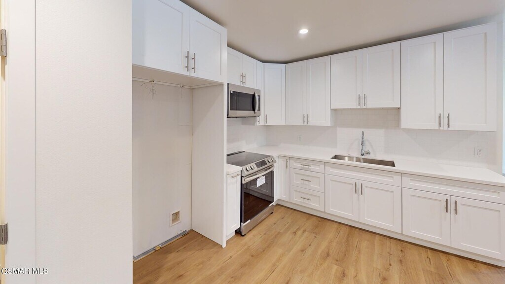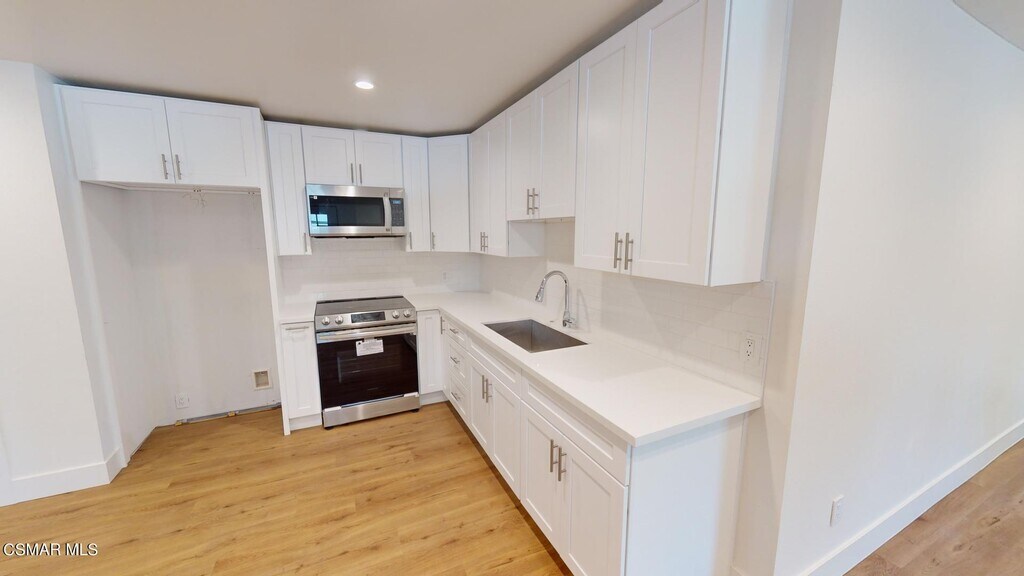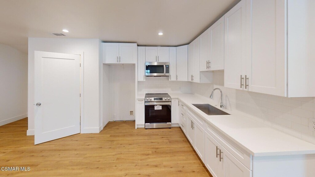 This beautiful brand-new 2+2 ADU features new vinyl floors, recessed lighting, dual pane windows, central heat and air, new floors, a living room, a large open kitchen area, new cabinets, quartz counters, stainless steel appliances, small laundry room with storage bathrooms, featuring new vanities, quartz counters, tile accents, one bathroom with soaking tub and the master bedroom with its private bath with new vanity, quartz counter, and tile shower, good size second bedroom with closet. This unit has a private patio, central heat, and air.