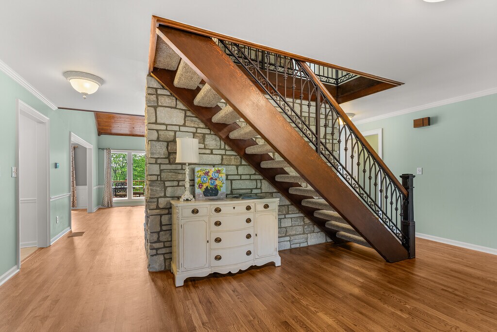 Escape to lakeside living on Garner Lake! With $140K+ in updates, this stunning 5 bed, 3.5 bath home offers unbeatable lake views from nearly every room on a beautifully landscaped 0.48-acre lot. The remodeled kitchen features updated soft-close cabinets, new hardware, backsplash, and a drink fridge. Refinished hardwoods flow through the vaulted great room with skylights and a grand stone fireplace. The main-level primary suite is a true retreat with lake views, its own fireplace, and a spa-worthy bath with soaking tub, expanded body-spray shower, new vanity, quartz counters, lighting, and flooring. The walk-out lower level includes a guest suite and sauna. Upstairs offers 3 bedrooms, a home office, and an updated full bath with new tub, tile surround, and flooring. Outside, enjoy a large yard, multiple entertaining areas, and an extended dock that spans the width of the lot. Located in a vibrant lake community, this home blends luxury, comfort, and the ultimate lakefront lifestyle!