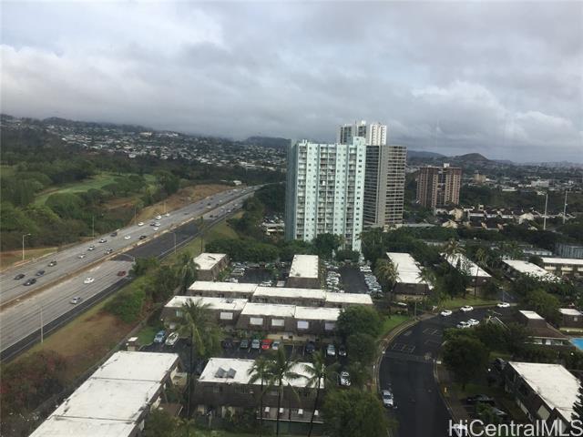 Preferred '03' corner unit stack featuring panoramic city and mountain views. Exceptionally clean 2BR/2BA with 2 parking stalls. Building offers resort-style amenities including a pool, gym, and sauna. Prime location walking distance to Pearlridge Center and Pali Momi. Rent includes water, sewer, cable, and internet