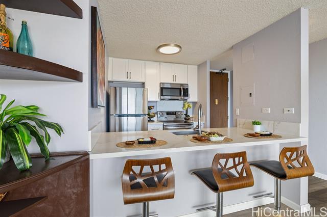 Welcome to Park at Pearlridge, a beautiful condominium community in the heart of Aiea. This 12th-floor unit offers a beautiful city view and a comfortable living space. Features: 1-bedroom, 1-bathroom with open living and dining area Lanai with cool breezes and scenic views Updated kitchen with ample cabinet space In-unit washer and dryer for convenience Window A/C units for comfort Building Amenities: Secured entry and 24-hour security patrol Swimming pool and hot tub BBQ and picnic area Tennis court Recreation area Resident manager on site Contact Joshua Horita (RB-21183) for a showing #.