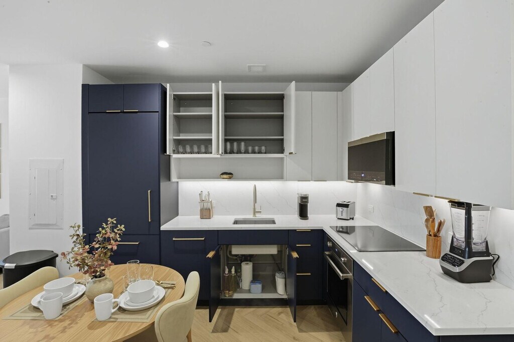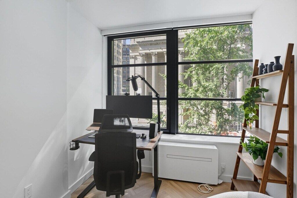 Experience elevated living and feel at home in this fully furnished studio in Quincy New York, in the heart of Midtown Manhattan. This studio provides a modern and efficient living space, complete with a sleek kitchen featuring quartz countertops and stainless steel appliances including a dishwasher, fresh linens, a full bathroom, a smart TV, an in-unit washer and dryer, and all-inclusive utilities. Exclusive amenities at Quincy New York include a luxury fitness center with Technogym equipment, Peloton bikes, free weights, and functional zones, a serenity garden, entertainment lounges with wet bars and large TVs, a modern co-working lounge with Zoom rooms and flexible workspaces, secure bicycle storage, a package room with a 24/7 secure package delivery system, and a direct elevator to the garage. In-unit design highlights include two-tone kitchen cabinetry with under-cabinet lighting, herringbone plank flooring, custom built-in closets, and spa-style bathrooms with tiled wet walls, satin gold fixtures, and lit medicine cabinets. There is also 24/7 concierge and security. Onsite parking is available in the garage, subject to availability. Early check-in from 9am–3pm is available for $75, and early check-in before 9am is the cost of one full night’s rent. Late check-in after 8pm is available for $50. Late check-out from 11am–3pm is available for $75, and late check-out after 3pm is the cost of one full night’s rent. From this centrally located apartment, you're within close proximity to Times Square, Bryant Park, and the cultural vibrancy of Midtown South. Internet speeds are not guaranteed and may vary depending on the device and location within the unit. A laptop computer is not included in the home office set-up. Includes private high-speed internet, an adjustable standing desk, an ergonomic work chair, a 34-inch ultra-wide monitor, a microphone and webcam for virtual meetings, computer speakers, an LED streaming light and green screen, a keyboard and mouse, and a laptop stand with a triple display USB-C dock. [SI]