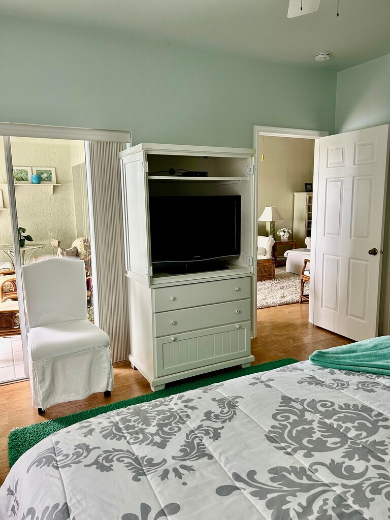 Beautifully furnished 2 bedroom, 2 bath plus den end unit condo. Den includes a queen sleeper sofa. Condo is located in Spanish Wells Golf Community. Enjoy the golf course views while relaxing on the tranquil lanai. Master bedroom includes a king bed while the second bedroom includes a queen. Walk-in showers in both bathrooms and an updated closet in master. Garage can be used that also includes 1 parking spot. Bikes, beach chairs and beach towels are all included. Only 3 miles to the beach and close to shopping and restaurants. Condo is a nonsmoking unit renter must abide by owner request. Cable & internet are included in rent, electric must be paid by renter. Call to view condo Rent 2,300 Condo will be available April 1, 2026-December 30 , 2026