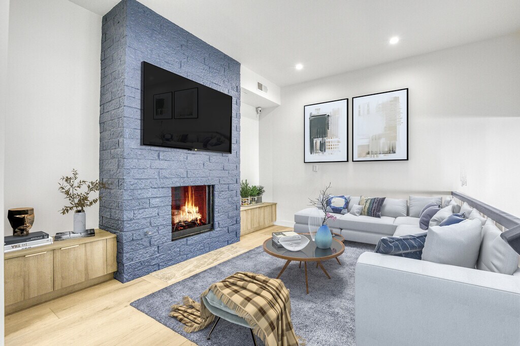 Stunningly remodeled and reimagined 2 bed (+ loft), 3 bath Single Family Home alternative townhome with Getty views in the heart of Brentwood. This 1,916 sqft corner unit was completely remodeled in 2025 with timeless design and modern sophistication. The main level features an open-concept living and dining area anchored by a large stone island, flowing into a chef's kitchen with custom oak casework cabinetry, stone counters, and high-end stainless-steel appliances. Twenty-foot, floor-to-ceiling windows and wide-plank French oak floors extend throughout, enhancing the abundant natural light and spacious feel. A versatile loft provides the perfect flex space for a home office, den, or guest retreat. The primary suite offers a marble-clad bath, generous closet space, a second fireplace, and views of the Getty Museum. Secondary bedroom and baths are equally refined, showcasing attention to detail and thoughtful design. Additional features include in-unit washer & dryer, central AC and heat, and two side-by-side gated parking spaces. Located in an intimate postmodern building with only nine residences, this townhome offers privacy and proximity to San Vicente's premier dining, boutiques, and cafes. MLS# 25603101