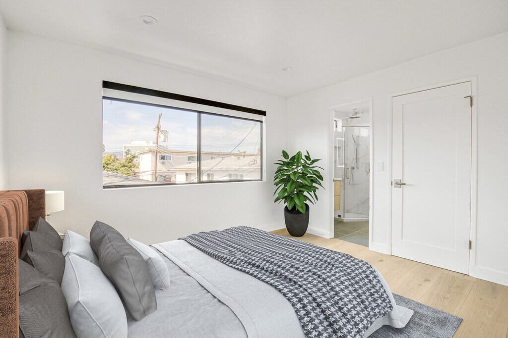 Stunningly remodeled and reimagined 2 bed (+ loft), 3 bath Single Family Home alternative townhome with Getty views in the heart of Brentwood. This 1,916 sqft corner unit was completely remodeled in 2025 with timeless design and modern sophistication. The main level features an open-concept living and dining area anchored by a large stone island, flowing into a chef's kitchen with custom oak casework cabinetry, stone counters, and high-end stainless-steel appliances. Twenty-foot, floor-to-ceiling windows and wide-plank French oak floors extend throughout, enhancing the abundant natural light and spacious feel. A versatile loft provides the perfect flex space for a home office, den, or guest retreat. The primary suite offers a marble-clad bath, generous closet space, a second fireplace, and views of the Getty Museum. Secondary bedroom and baths are equally refined, showcasing attention to detail and thoughtful design. Additional features include in-unit washer & dryer, central AC and heat, and two side-by-side gated parking spaces. Located in an intimate postmodern building with only nine residences, this townhome offers privacy and proximity to San Vicente's premier dining, boutiques, and cafes. Rental Terms: Annual: $6,900 Per Month