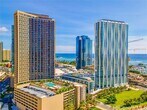 This new 'Aalii' high-rise corner unit offers panoramic views of the ocean, sunsets, harbor, mountains, and cityscape. The unit includes a private lanai, Bosch appliances, and natural stone countertops with a full-height backsplash. It also comes with a separate storage room and two private parking spaces, one with an EV charger. An additional large storage unit is on the private parking floor, along with overhead storage. Residents can enjoy resort-style amenities, including a pool, spa, BBQ grills, private cabanas, a kids' play area, and an outdoor kiddie pool. The 42nd-floor penthouse level amenity deck features a fitness center, yoga room, meeting rooms, billiard table, outdoor sky terrace, and spacious recreational areas. This brand new unit has never been lived in and is located in a vibrant luxury community near the ocean and shopping malls.