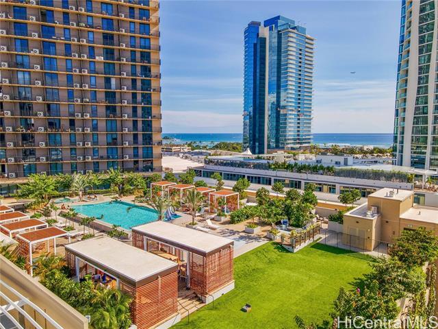 Enjoy beautiful ocean and mountain views from every rooms. High floor, move in ready corner 2 bedroom/2bathroom/2 covered parking stall unit in the amazing Ward Village community. This unit is equipped with high end appliances. Resort living at its finest. Amenities galore on 2 separate floors, including a sky deck, private conference/party room, pool, kids pool, BBQ cabanas, fitness center, theater, children's play area and more. 24-hour security. Across from Ward theater, Whole Foods, restaurants, shopping, Straub clinic and close to Ala Moana Park. Rent includes water, sewer and internet. Application of $20 per adult. No pets. No smoking. No virtual showings. Must view in person before applying.