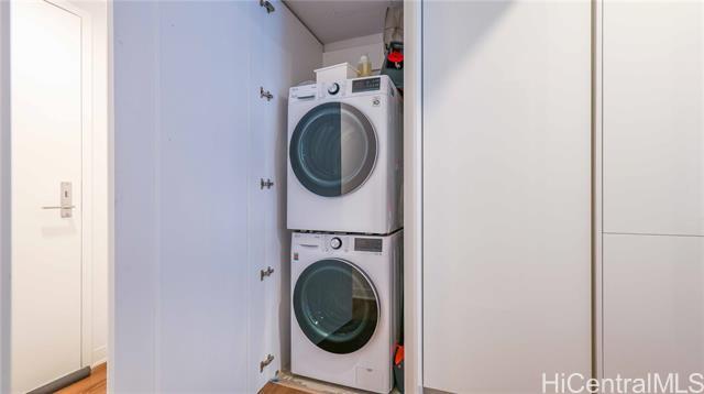 This condo has it ALL! Location, views, first class amenities, and SO much more. Step into Ward Village's newest luxury condominium residences at the A'ali'i tower. This unit features Bosch kitchen appliances (including dishwasher), quartz countertops, bright lacquer cabinetry, high-end fixtures, and an in-unit washer/dryer. The living area offers a very easy to use Murphy Bed, making the transition between night and day a breeze! A'ali'i Tower provides an amenity offering that is second to none. The luxury pool deck boasts a massive swimming pool, wading pool, multiple whirlpool spas, cabanas for lounging or for dining/BBQ, a recreation area, and multiple event spaces available for reservation. Head up to the 42nd floor to take advantage of the fully equipped rooftop gym, yoga studio, event space, and Sky Lounge. Work from home? The Sky Lounge makes for the most incredible work space. Though how much work you'll get done while taking in panoramic ocean and mountain views is up to you. Centrally located in Kaka'ako, you will never find yourself wanting for shopping, dining, and entertainment options. Ward theatre and Whole Foods are literally at your front door. Along with countless other dining and shopping outlets. Ala Moana Beach Park and multiple famous surf spots are just two blocks away. With downtown Honolulu, Waikiki, and the H-1 freeway just a mile in any direction, you can be anywhere in no time at all. ESA and Service Animals Welcome! Water/Sewer, Parking (1), Storage, Trash, and Internet are included. Tenant is responsible for electric. Condo is rented FURNISHED. Amenities: Community Pool, Meeting Room, Pool, Resident Manager, BBQ, Guest Parking, Fitness center, Club House, Swimming Pool, lounge room, Surfboard Storage, Bicycle Storage, Community Pool & Recreation Area, Yoga Room, Trash Chute, Concierge