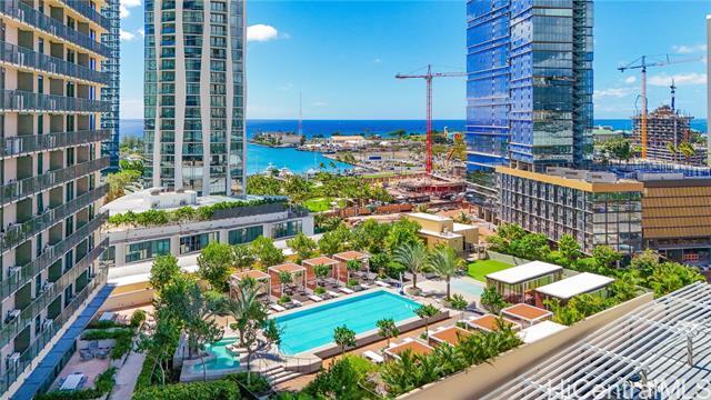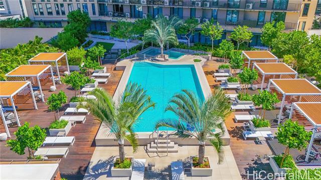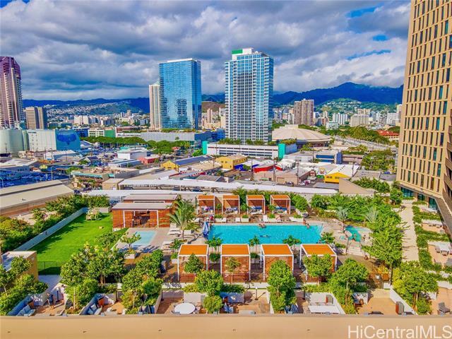 This condo has it ALL! Location, views, first class amenities, and SO much more. Step into Ward Village's newest luxury condominium residences at the A'ali'i tower. This unit features Bosch kitchen appliances (including dishwasher), quartz countertops, bright lacquer cabinetry, high-end fixtures, and an in-unit washer/dryer. The living area offers a very easy to use Murphy Bed, making the transition between night and day a breeze! A'ali'i Tower provides an amenity offering that is second to none. The luxury pool deck boasts a massive swimming pool, wading pool, multiple whirlpool spas, cabanas for lounging or for dining/BBQ, a recreation area, and multiple event spaces available for reservation. Head up to the 42nd floor to take advantage of the fully equipped rooftop gym, yoga studio, event space, and Sky Lounge. Work from home? The Sky Lounge makes for the most incredible work space. Though how much work you'll get done while taking in panoramic ocean and mountain views is up to you. Centrally located in Kaka'ako, you will never find yourself wanting for shopping, dining, and entertainment options. Ward theatre and Whole Foods are literally at your front door.