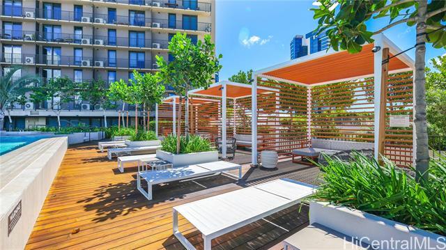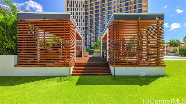 Welcome to your new home at 'A'ali'i, designed by award winning architect Solomon Cordwell Buenz. Partially furnished studio unit located in the tower of 'A'ali'i. These studios were designed to take advantage of smart, modular furniture and these modern pieces maximize space and create a more efficient living environment. Furnishings include a built-in murphy bed system/couch, desk, closets and storage. Natural stone countertops, Bosch kitchen appliances and Studio Becker cabinetry complete the luxurious look and feel of the kitchen. European porcelain tile in the bathroom and luxury vinyl plank flooring throughout. Kitchenware all included for your convenience. Lanai 42 is a one of a kind building feature in Ward Village, featuring a sunset sky lounge, outdoor fitness deck, rooftop fitness club, ocean view event spaces, dining room and yoga studio. The 8th floor recreation deck features a keiki splash and play area, pool and cabanas, indoor/outdoor event spaces, and barbeque areas. Tenant shall be responsible for electricity, cable and upgrades to internet. Renters insurance required. Advertising pictures include some staging items that are not included with the unit.