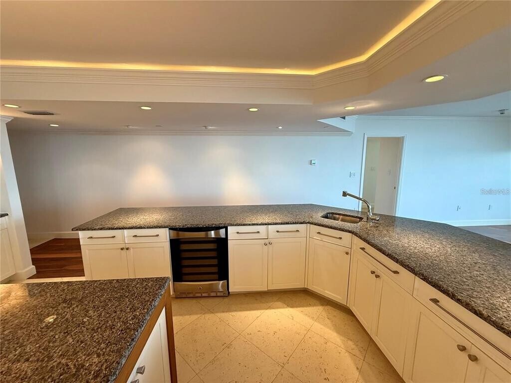 LOCATION,LOCATION,LOCATION. UNFURNISHED ANNUAL RENTAL CONDO AVAILABLE AT THE SOUGHT AFTER CONDO ON THE BAY COMMUNITY. This is a rare opportunity to live in one of Sarasota's best condominium buildings. Large three bedroom end unit condo directly on the water of Sarasota Bay with unobstructed sweeping 270° views from Ringling Bridge to Anna Maria Island. The entire condo faces west overlooking the water with nightly sunsets over the Gulf of Mexico. The Condo boasts three bedrooms,2 1/2 bathrooms,two balconies and has views from every window. The condo has an open floor plan with three separate bedrooms,a large,gourmet kitchen with plenty of upgrades. The kitchen features granite countertops,high-end stainless steel Wolf appliances,Subzero fridge/freezer,double sinks,a center island,a wine fridge and ample space for cooking and entertaining. The master bedroom has a large built-in walk-in closet as well as three other closets. Custom en suite master bathroom has double sinks and a large walk-in shower. The second bedroom has a walk-in closet and en suite bathroom and the third bedroom has built-in bookshelves and balcony doors leading onto the second balcony. In unit,full-size washer and dryer. All windows have automated roll down blinds. There is carpet in two of the bedrooms,and engineered hardwood throughout the condo and coral stone floors in the kitchen and foyer. The condo has a tankless water heater,water purification drinking system,and a additional large walk-in storage closet for storing large items. The condo on the bay community offers a gated security,concierge service,two recently re-refinished community pools with new decking and furniture. There are community barbecue grills,tennis courts,pickleball courts,a meeting room with kitchen,and two newly refinished fitness centers. You’re at the heart of it all in this building as you’re minutes from downtown Sarasota,Selby Gardens,the bayfront theaters,restaurants and beaches. The condo comes with one assigned covered garage parking space as well as additional free uncovered parking. Tenants must provide proof of renters insurance with liability. The condo on the bay management requires a refundable $200 move-in fee and a refundable $200 move out fee. CALL TODAY AS THIS UNIT WILL NOT LAST LONG. MLS# A4687555