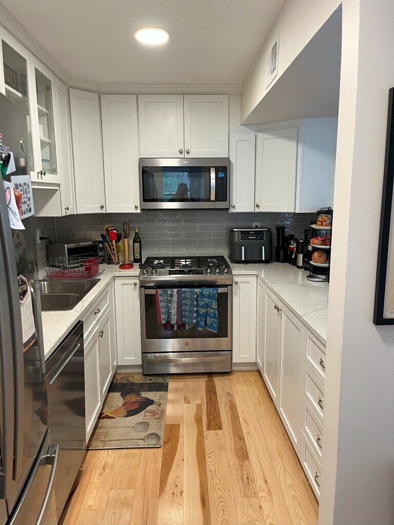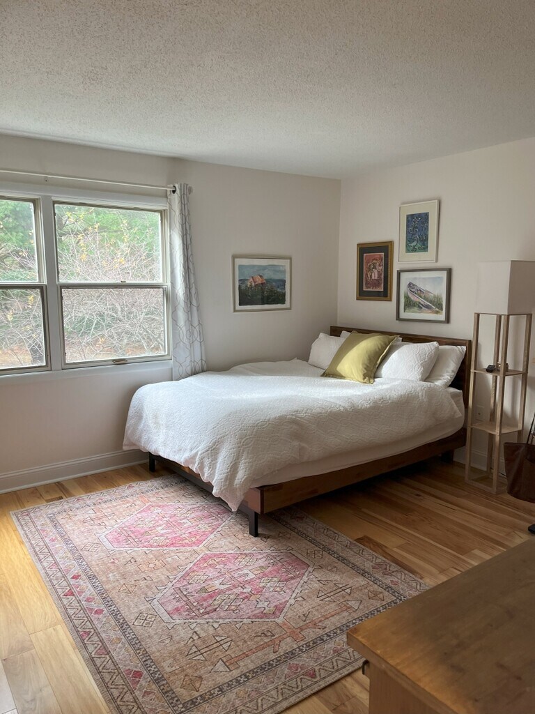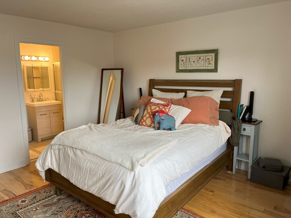 Recently renovated condo with hardwood floors, wonderful, spacious living/dining rooms, 2 bedrooms, each with its own bathroom. Newly renovated kitchen with quartz countertops. The living room has a sliding door opening to a balcony with steps that will take you to a 50 acre woodland interspersed by hiking trails and a brook. The lower level of the condo has a large room which can make a great office/study or den, with a ½ bath, laundry room and lots of storage space. The club house has an exercise room, hot tub, and sauna. You would have access to outdoor gardens, tennis court, canoe/kayak storage. Lease Term: 12 Months (1 Year) Due upon signing of lease: First & last month's rent Cats and small dogs are accepted.