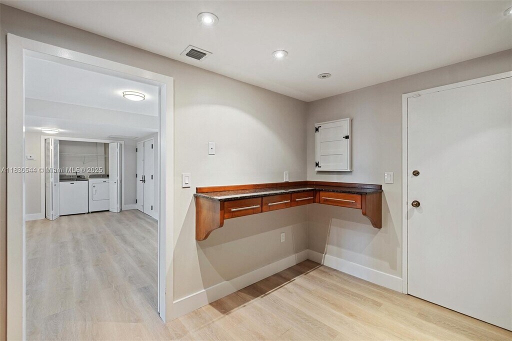 Substantially remodeled 2 bedroom 2 bath unit in Grove Isle Building 1. Recent upgrades include flooring, impact windows and doors, electric shades, bathroom and vanity fixtures, washer and dryer, TV's in the living room and primary bedroom, A/C. The kitchen has wood cabinets with granite countertops and stainless steel appliances, the dining room built-in offers extra storage and a wine cooler, and both bedrooms have customized walk-in closets. A beautiful place to enjoy Grove Isle, a 20-acre private island with resort amenities: 2 pools, a gym, tiki huts, barbeques, a playground and playrooms for the children, and more, with soon to be completed tennis and pickle ball courts, and a restaurant.