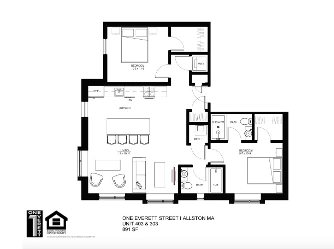 Apartment Unit: 4Apartment Model: 4 - 1 Harvester St$4,6502 Bedroom, 2 Bath, 855 sq ftAvailable September 1, 2026![]()