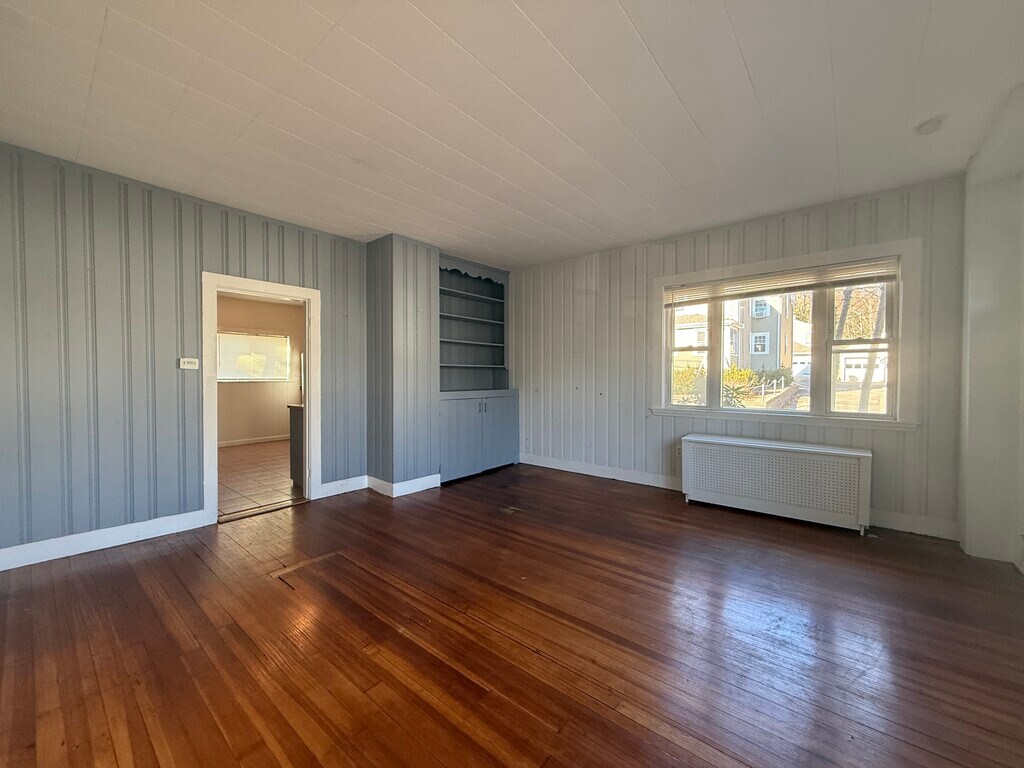 QUINCY-2BR/1.5BTH-$2,800/mo- Step into this bright and surprisingly spacious 2-bed, 1.5-bath duplex set on a quiet side street just minutes from Quincy Center, the T, Highway access, and all the shopping and restaurants nearby. Featuring high ceilings, freshly painted interiors, and hardwood floors throughout, this home blends comfort, space, and convenience in one of Quincy's most desirable areas. The oversized living room is filled with natural light from multiple windows and offers beautiful warm hardwoods, built-in shelving, and great flow into the large eat-in kitchen. The kitchen provides generous cabinet storage, gas cooking, a dishwasher, updated lighting, and plenty of room for a dining table making it perfect for daily living and entertaining. Upstairs, you'll find two spacious bedrooms with great ceiling height, clean lines, and beautiful floors. The full bath has a newer vanity and a window bringing in natural light. The first level also includes a convenient half bath complete with in-unit laundry, a rare find in this price point. Additional bonuses include off-street parking in a shared driveway, a huge shared yard with excellent privacy, and basement storage for extra belongings. The home also offers updated electrical, plumbing, a newer gas heating system, mostly newer windows, and even a newer roof giving tenants peace of mind and improved efficiency. If you're looking for a well-kept, bright, and spacious home in a fantastic location with outdoor space and parking, this rental checks every box. A year lease. Owner pays for water. Good credit score, strong income and references required.