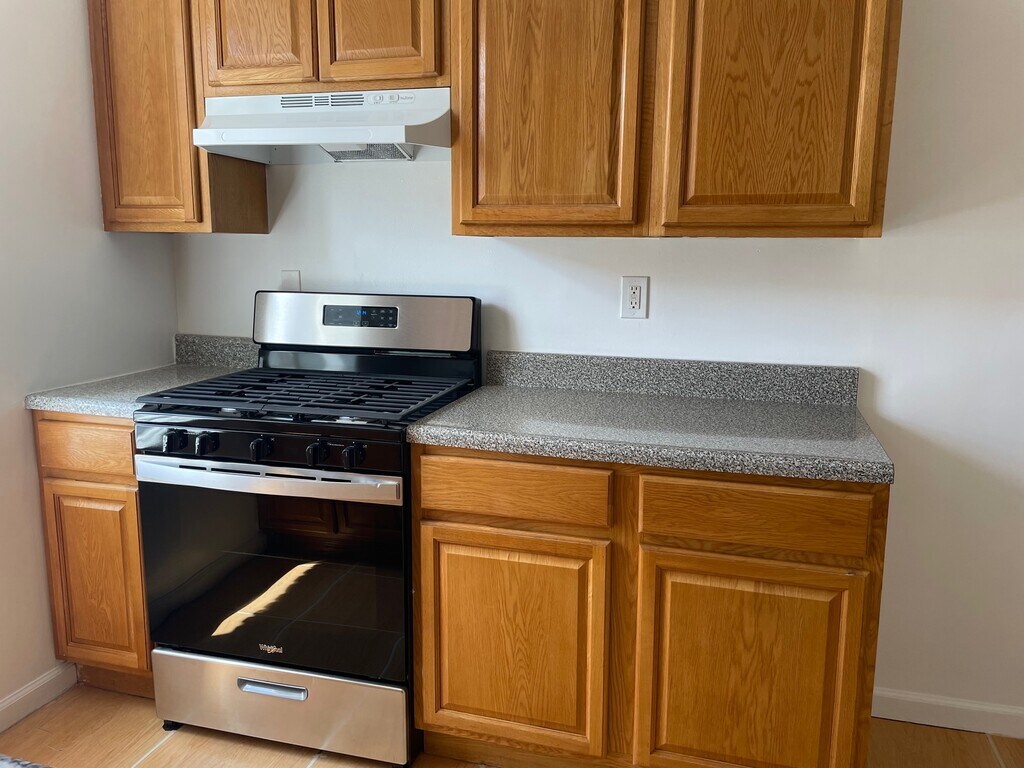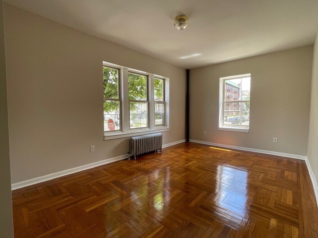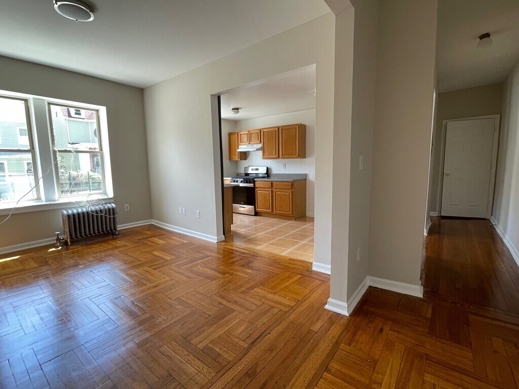 Completely renovated 2 bedroom apartment 1,200SF. New appliances. Eat in Kitchen with widows, dining room, pantry, a lot of closets and spaces. 3 minutes walk to the train station to NYC. Heat and hot water included. The clean safe building with super live in.