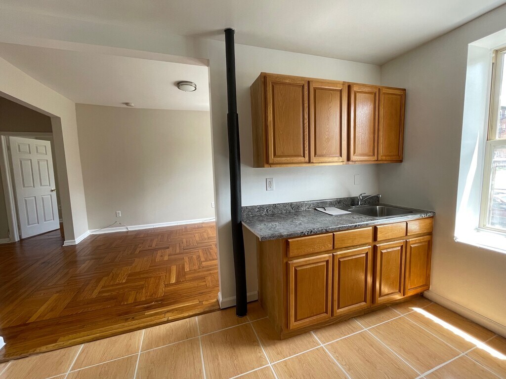 Renovated 2 bedroom apartment 1,200SF. Eat in Kitchen with widows, dining room, pantry, a lot of closets and spaces. 3 minutes walk to the train station to NYC. Heat and hot water included. The clean safe building with super live in.