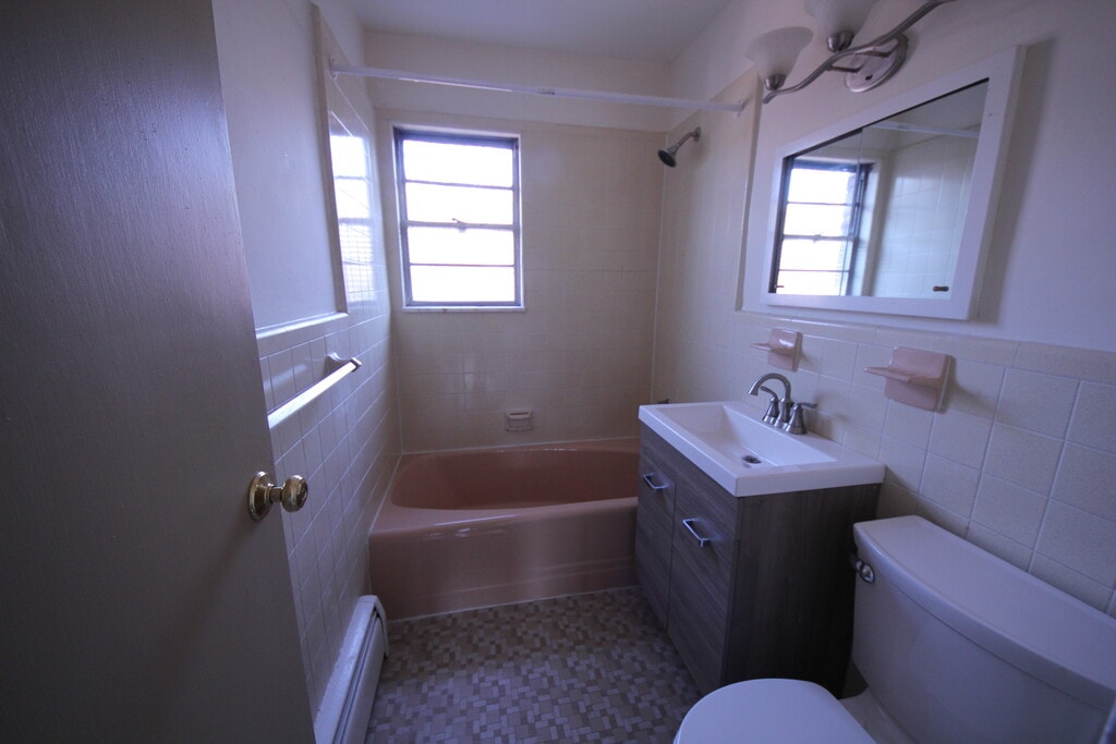 Large 1 bedroom - 1 bath apartment newly renovated. Spacious and bright living room, new hardwood floors. Lots of closet space, with large eat-in-kitchen. Free on premise parking. Perfect location close to downtown shopping district. Easy access to NYC and shopping mall bus transportation. Pharmacy, supermarket and restaurants nearby. Amenities: Refrigerator/Freezer Large eat-in Kitchen Large living room Large built in closet space Tub/Shower Heating and Hot water included Cable ready Free Onsite parking lot Convenient to Public Transportation, Shopping & NYC Public Transportation