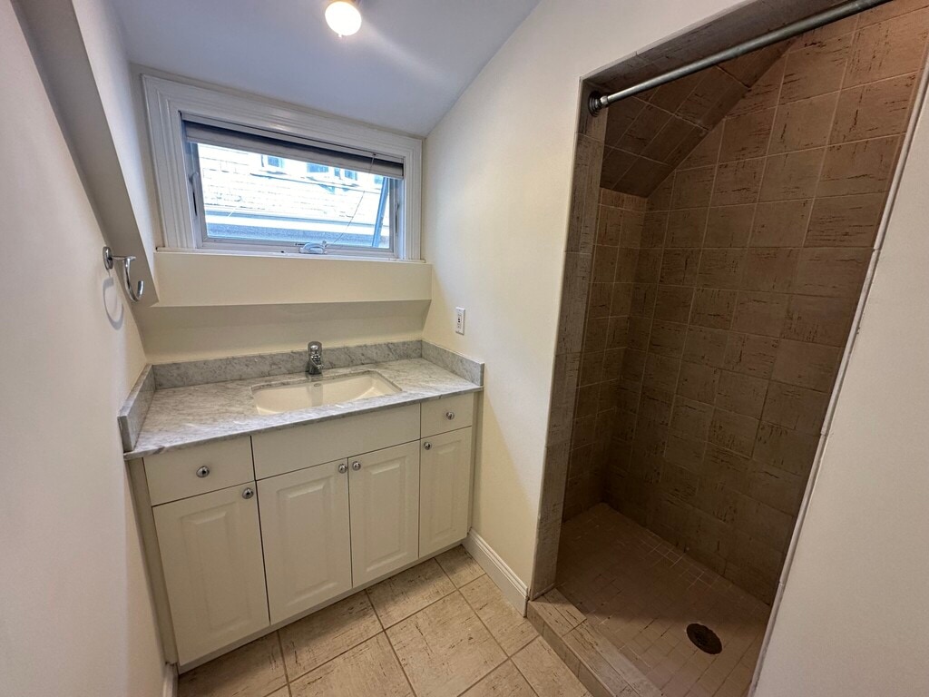 Oversized 1.5 bedroom unit with private deck– this apartment spans over two floors. Bright and inviting living room, enhanced by a skylight, adding a unique, modern touch while connecting the indoors with the beauty of the outdoors. Updated and stainless steel applianced kitchen with dishwasher & disposal. Free washer & dryer in unit. Private deck, recess lighting with dimmers, hardwood floors throughout and access to a large backyard. Private parking available for rent, otherwise easy street parking available with a resident permit. Easy access to B, C, and D lines (all less than 1/3 of a mile away).