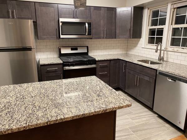 HEAT AND HOT WATER INCLUDED Renovated 2nd floor condo style apartment 2 bedrooms 1 bath Over 1000 square feet Hardwood floors throughout Updated open floor plan kitchen comes with granite countertops, custom cabinets, and stainless steep appliances Dining room Large living room Washer/dryer in unit Master bedroom can fit a king sized bed Walk in closets in both bedrooms! Updated bathroom with tub Off street parking for 1-2 cars Detached garage may be available for an additional $65/mo Cats and dog ok for extra cost if under 35lbs Short walk to train station and downtown Top rated school district *Broker fee due by lease signing*