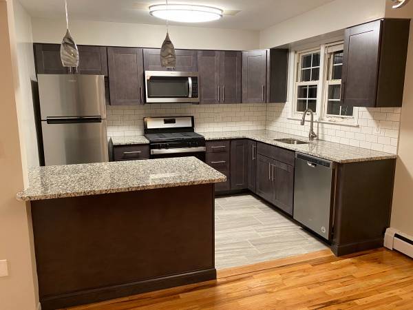 *1st month free on a 13 month lease* HEAT AND HOT WATER INCLUDED 2 bedroom 1 bath apartment 1st floor unit Hardwood floors throughout Open floor, plan kitchen with stainless steel appliances Living room Dining room Walk in closets in both bedrooms 1 car garage available for an additional $100/mo, you can rent more than one garage if you want 5-10 minute walk to train station and downtown Short walk to supermarket grocery store Cat might be considered *Broker fee due by lease signing*