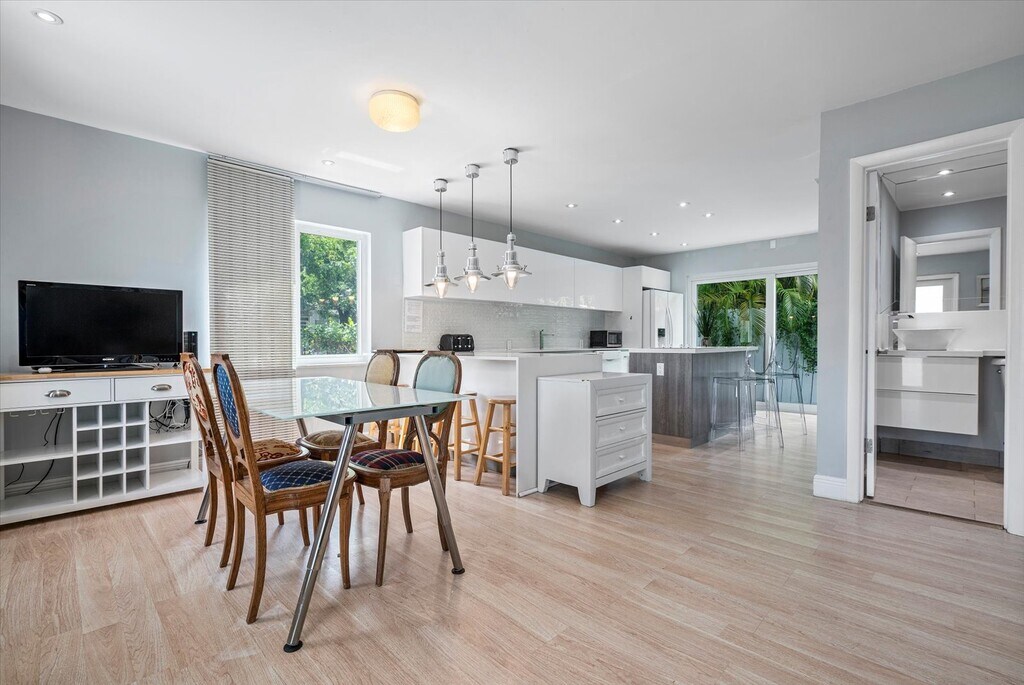 Stunning corner 3BD/3BA home steps from Design District. Remodeled w/modern Euro-design, impact windows & spacious kitchen w/quartz countertops. Large private patio w/jacuzzi & fully fenced yard. Rent includes cable, internet & security cameras. Prime location near luxury boutiques, dining & cafés—minutes to Wynwood, MIA, Downtown & South Beach.