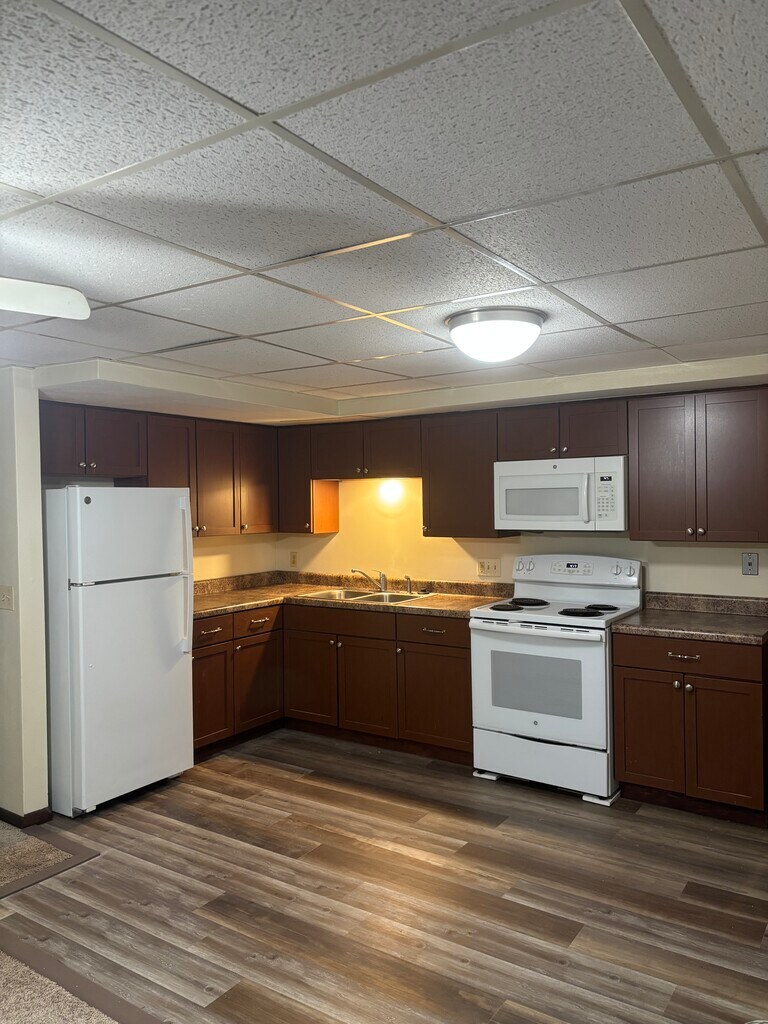 Teo bedrooms one bath, built in micromave, acess to washer and dryer. We pay water, heat and provide Metronet internet. Only utility renter pays for is electric.