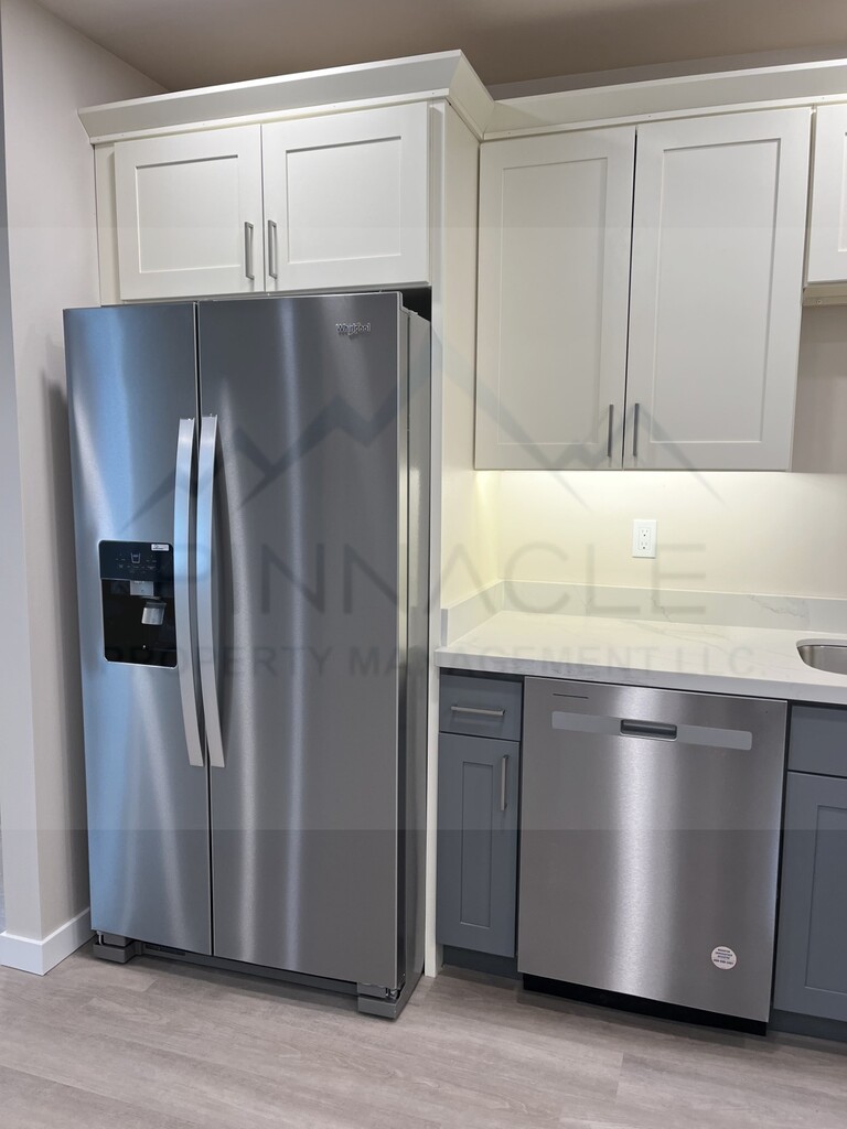 Beautiful and spacious apartment homes. Designed with the highest quality finish work and products with ultra-quiet insulation between all units. • Gated secure access • Quartz countertops in all kitchen and bathrooms with slow close cabinets and drawers • Stainless steel appliances • Individual ductless heat and air conditioning in each room • Individual garages with extra parking available • Electric vehicle charging stations • Fully equipped secure fitness center with TV • Onsite secure laundry facilities • No-hassle utility package handled by property management at a reduced rate • All units assigned one parking spot. Guest parking available