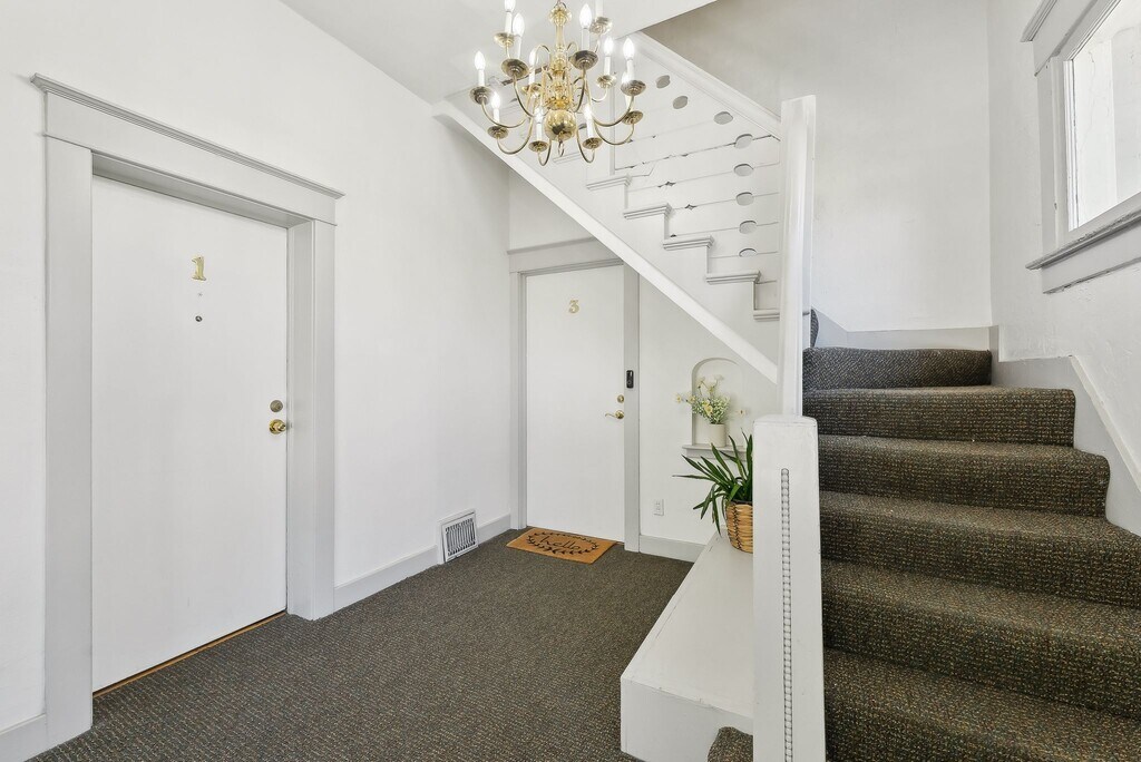 2nd floor apartment. 5-6 blocks from University of Utah, and on bus line to campus.