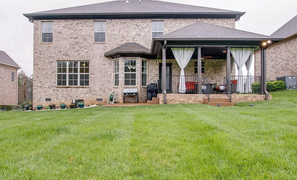 Williamson County near award-winning schools. Available now. Beautiful 2-story brick home in Nolensville's Brittain Downs! Spacious 5-bedroom, 3.5-bath home. Open floor plan w/ finished wood floors, living room with fireplace, eat-in kitchen w/ granite counters, formal dining room with dry bar. Main level master suite has a whirlpool tub. Over the garage is a large-sized bonus/rec room and upstairs has 4 bedrooms with 2 full baths. 2 of those bedrooms have direct private access to a bathroom. 2-car attached garage, covered patio looking out to a large backyard. Rent includes lawn service. Small dog considered.