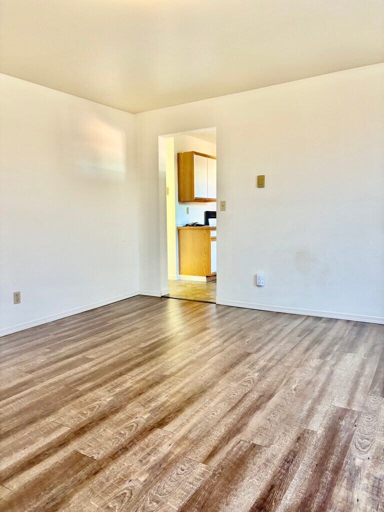 Large, oversized living room with full kitchen (dishwasher) and full bath (tub), bedroom, plus a second closet or a cute office space! Walk to downtown, shopping, groceries, I-5 is 2 minutes away! Centrally located and tandem parking behind the unit. The home has a newer stove, lighting, flooring, paint, trim, and is hypoallergenic. With updated doors, locks, and space for gardening. Very comfortable space!