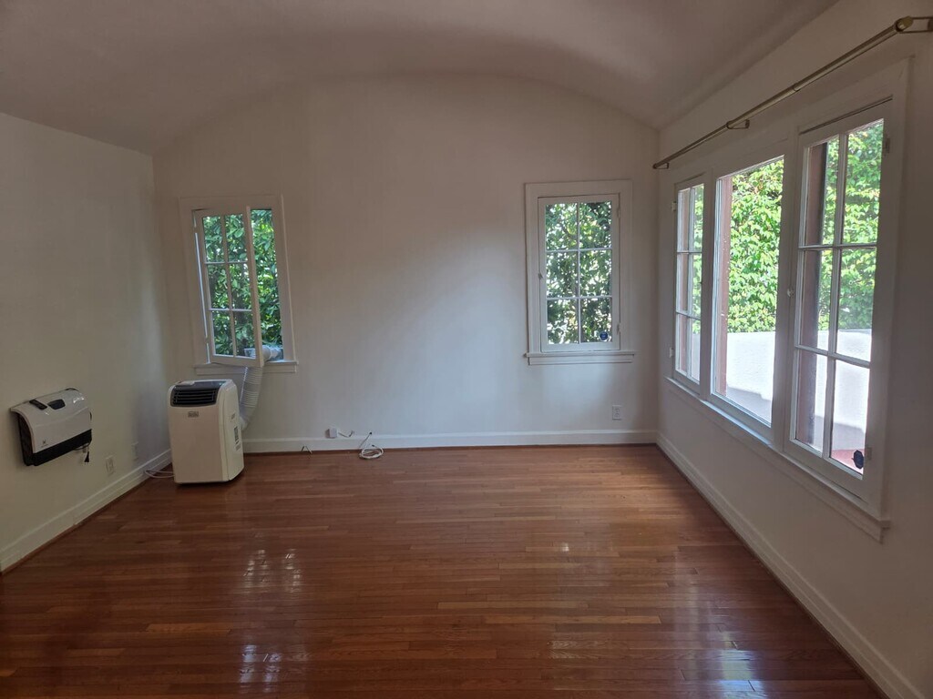 Charming Spanish duplex house, 2 bedrooms, 2 baths, large balcony, extended master bedroom, back yard. Over 1300 sq. feet, beautiful hardwood floors, remodeled bathrooms and kitchen, beautiful lighting, lots of windows, skylight. Driveway parking accommodates four cars. Quiet, safe, lush neighborhood, walking distance to cafe's, restaurants, bars, clothing stores in West Hollywood, Beverly Hills and Hollywood. Please text Stephan at two one three-eight zero four- zero four four four