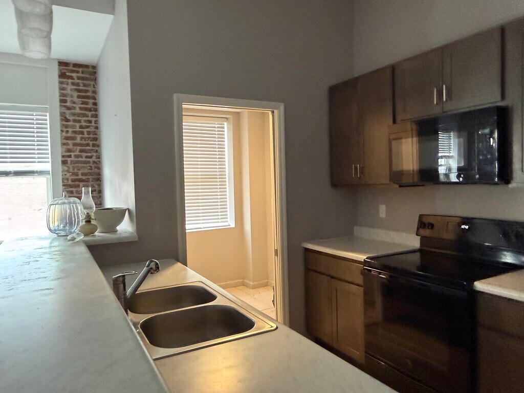 Discover urban living at its finest in this spacious 2-bedroom, 1-bath gem, blending modern comfort with timeless character. Boasting 1,500 sq ft of open, airy space, you'll love the abundant exposed brick walls that add a rustic vibe to every room. The amazing kitchen features a massive island perfect for whipping up meals or hosting friends. Practical perks include in-unit washer/dryer hookups and ample storage with built-in closets and a dedicated utility area. Natural light floods in through oversized windows, making it feel even more expansive. Prime location just minutes from I-44 and iconic Route 66—commute with ease while soaking up the vibrant downtown scene. Stroll to lots of great eats and shops all within walking distance. Pet-friendly (with approval) and available now