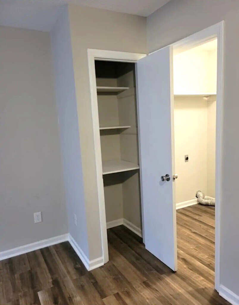 Located in a quiet residential neighborhood, this private 1 bed, 1 bath apartment includes in-unit washer & dryer hookups, plank flooring throughout, and updated kitchen cabinetry and appliances. Lease terms: $825 monthly rent $825 security deposit $29 application fee Tenant pays for electricity and water/sewer Pets are allowed with a monthly pet rent fee of $20 for each cat or $30 for each dog. Smoking is not allowed. Qualifications include a 650 minimum credit score and monthly income of 3x the monthly rent. An initial lease lasting until May 31 or June 30 2026 is available, then optionally renewable annually thereafter.