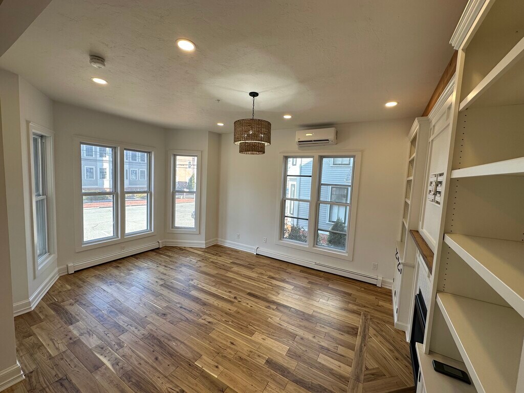 First, Last and Security Required. Tenant to provide renters insurance. Water and sewer included. Full background, credit check, proof of income and reference check for qualified applicant's. One assigned parking spot and storage available in basement. Desirable first floor, downtown location. Professionally managed. Available now. No Pets. Experience downtown living at its finest in this recently upgraded, spacious 2-bedroom, 1-bathroom apartment nestled in the heart of Newburyport. Step inside to discover high ceilings and brand new hardwood floors throughout, complemented by farmhouse-style trim and upgraded lighting fixtures. The living room boasts custom built-ins, a remote-controlled gas fireplace, and ample natural light streaming in through the windows, creating a cozy yet airy atmosphere. Remodeled kitchen, equipped with high-end stainless steel appliances, including a dishwasher and an ice-making/water-dispensing refrigerator. Washer and dryer are also included. The bathroom features custom cabinets, high-end fixtures, and a sleek glass shower door. Stay comfortable year-round with ductless heating and air conditioning, while never worrying about running out of hot water thanks to the on-demand tankless hot water system. Don't miss the opportunity to make this upscale apartment your new home sweet home.