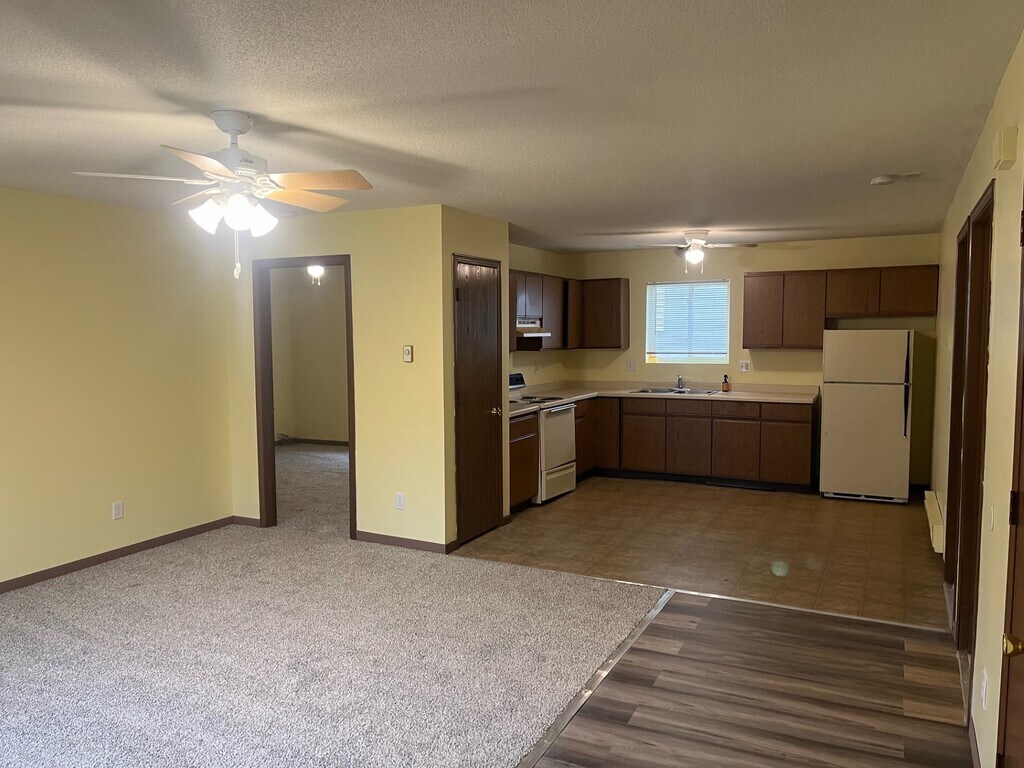 Open concept lower rental opportunity. This unit features a private entry-way, large closets, new carpeting, fresh paint, air conditioning, on-site laundry facilities and off-street parking. Kitchen appliances are included: stove and refrigerator. Tenant pays for electricity. No smoking and no pets allowed. A 12-month lease and a $850 security deposit are required.