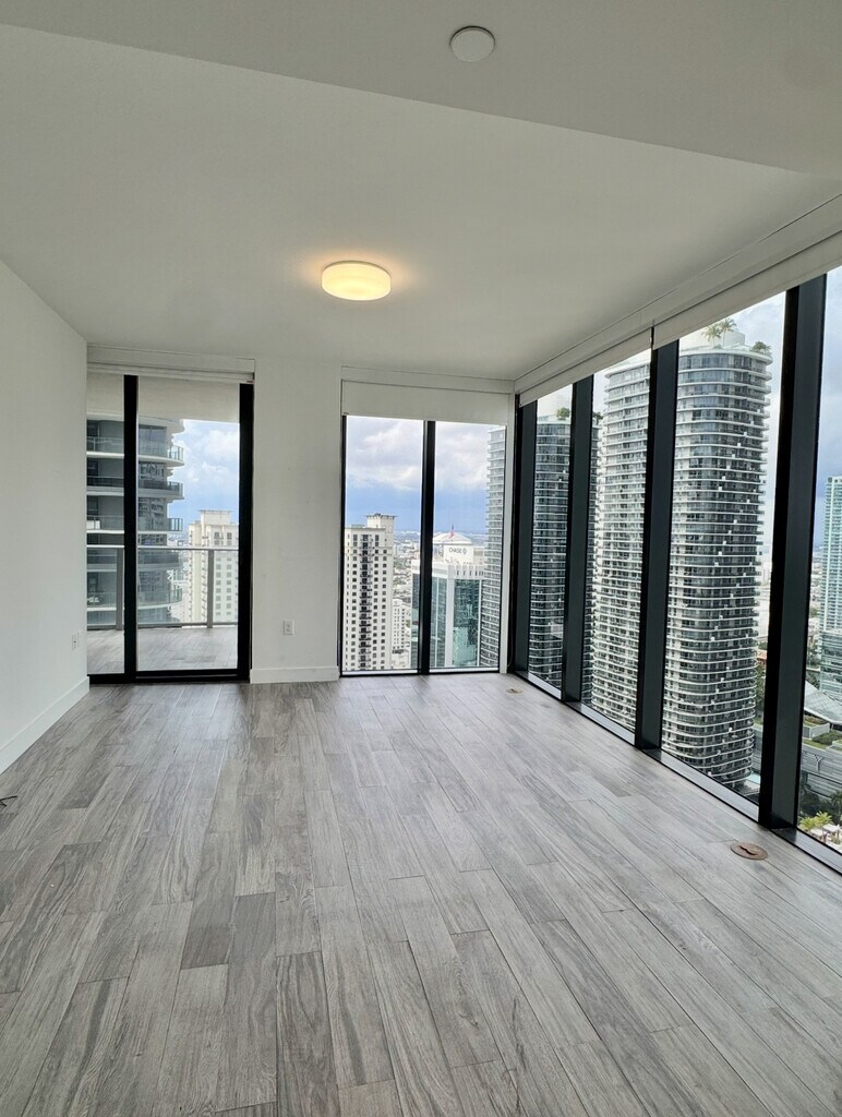 Spectacular Unfurnished corner unit 11 Line at 1010 Brickell Condo. Unit features: 1 bed + Enclosed Den, 1.5 baths, glass-enclosed shower, custom made closets, window treatments, wood like tile floors, 9-foot ceiling heights, top of the line Smeg appliances, & 1 Parking ! Live & play in this luxury building that offers: outdoor movie theatre, restaurant & swimming pool at 50th floor rooftop; Co-ed Hammam spa w cold & hot Jacuzzi, massage & treatments rooms, sauna & steam room at 12th floor; basketball & racquetball courts, running track, indoor heated swimming pool, fitness center, party room w kitchen, open terrace & barbecue, room w bowling, virtual golf simulator, ping-pong, among others. Excellent location next to public transportation, Brickell City Centre, & mor