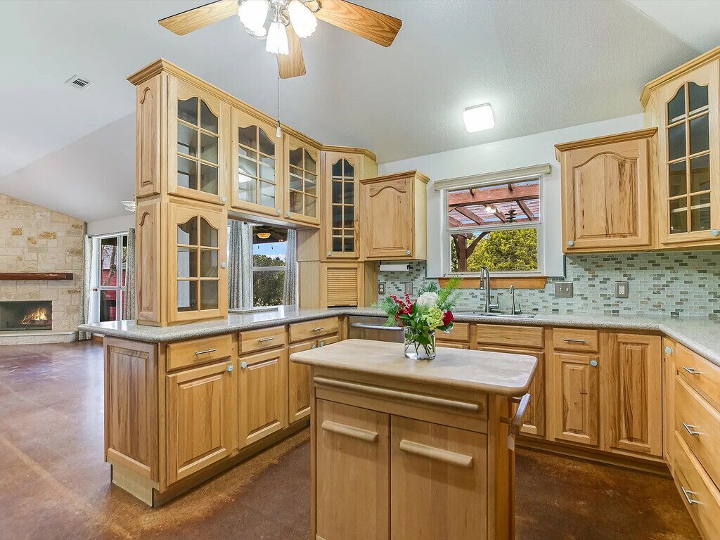 Welcome to your new home at 1010 Foothills Dr., located in the desirable Sunset Canyon community of Dripping Springs, Texas. This exceptional property is available for lease and promises a blend of comfort, style, and ample space, nestled on a stunning 1.779-acre lot. As you approach the residence, you'll be greeted by expansive porches both at the front and back, totaling over 450 square feet, perfect for relaxing or entertaining guests. The home's exterior is complemented by an efficient, durable metal roof, ensuring long-term resilience against the elements. Step inside to discover 1,862 square feet of thoughtfully designed living space. The interior boasts beautiful stained concrete floors throughout, eliminating the need for carpet and providing an elegant yet low-maintenance flooring option. High ceilings and new designer paint enhance the sense of openness and contemporary style. The home offers four bedrooms and two full baths, with the flexibility of converting the extra-large office into a fourth bedroom, catering to your family needs or a work-from-home setup. The bedrooms are spacious, providing cozy retreats for relaxation. Outside, the property is fully fenced, making it an ideal environment for pets and children to roam safely. Additional structures, including sheds and a greenhouse, offer practical storage solutions and the potential for hobby gardening. This property provides ample parking space for those with RVs, boats, or additional trailers, including a dedicated spot for larger vehicles, ensuring convenience and peace of mind. Located in the heart of the Texas Hill Country, 1010 Foothills Dr. offers a serene lifestyle while being just a short drive away from local attractions, dining, and shopping options in Dripping Springs. Embrace the tranquility of rural living without sacrificing the conveniences of a vibrant community. Don't miss the opportunity to lease this exceptional property in Sunset Canyon.