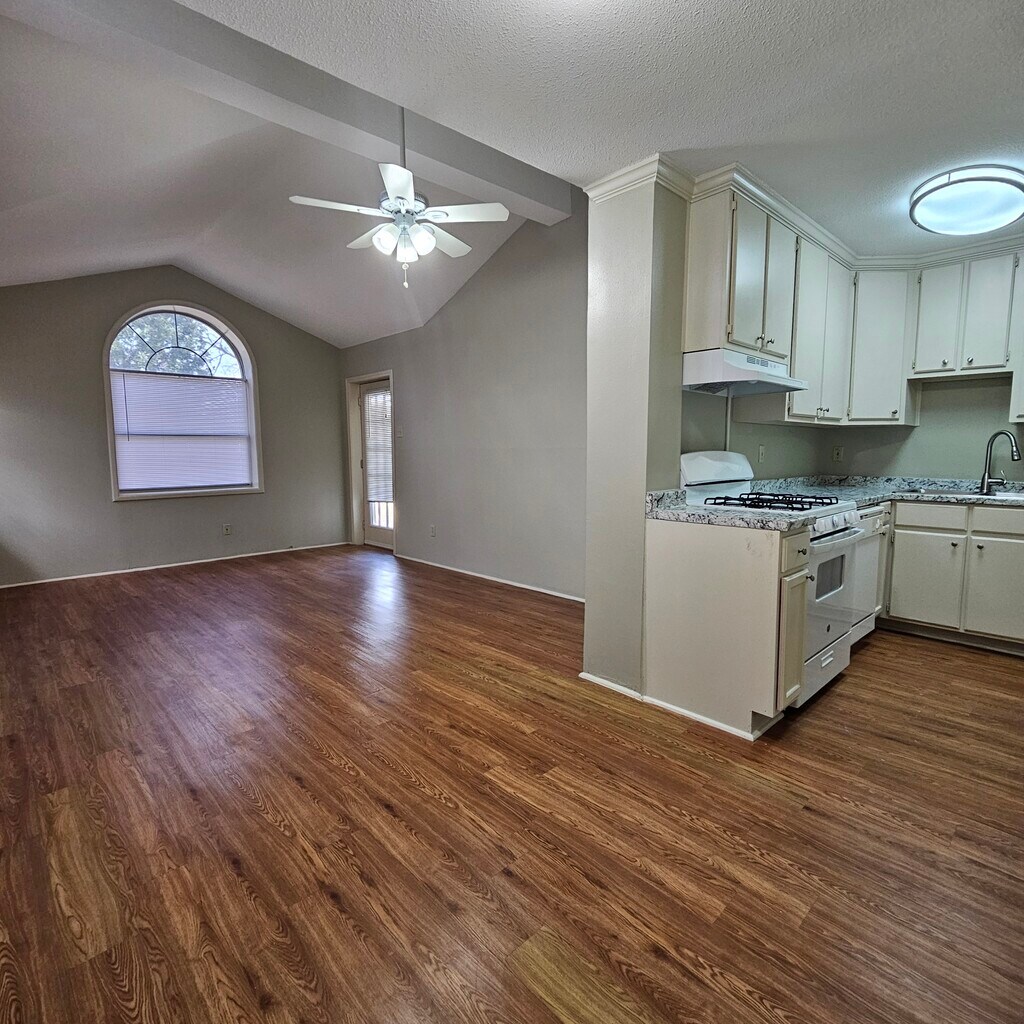 • Duplex Community near White Rock Lake • Hardwood Floors in Living Room , Kitchen, Hall and bath • New Gas Stove, refrigerator and dishwasher • Vaulted Ceilings and ceiling fans in all rooms • New Carpet in both bedrooms • Full size washer and dryer connections • Private Fenced backyard and one car garage with remote control • 24 Hour Emergency Maintenance • We even mow the front yard!