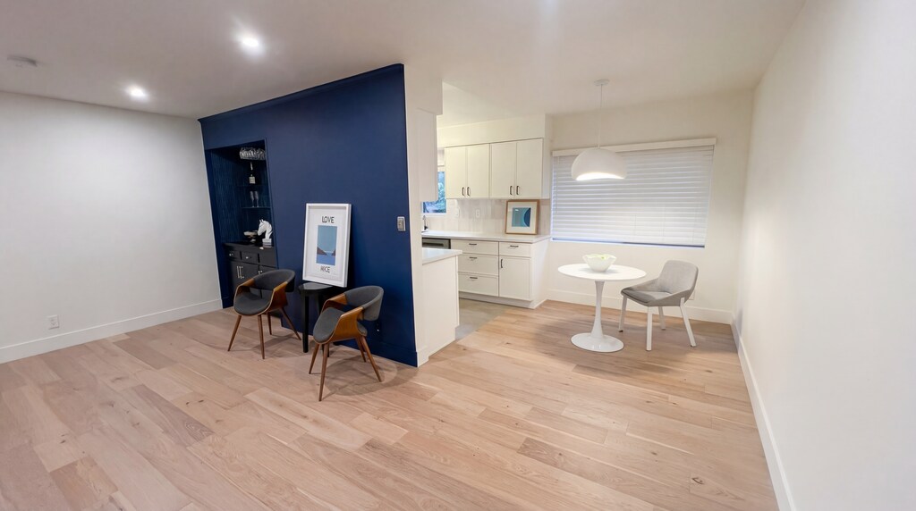 Lease Special – One-month free rent Fully Renovated 2-Bedroom, 2-Bath & Balcony | $3,495 | Available Now Desirable westside section of West Hollywood on a quiet cul-de-sac street near the Sunset Strip. Pets allowed up to 25 pounds Lush courtyard surrounded by greenery and centered around a pool. – Mid Century Style two-story Apartment building • Second-floor corner unit – bright and airy with great natural light • Completely renovated with beautiful hardwood style-floors throughout • Modern kitchen featuring stylish cabinetry, quartz countertops, and all-new stainless-steel appliances (range, refrigerator, dishwasher) • Beautiful bathrooms with elegant tile work, vanities, and sleek fixtures • Charming midnight-blue wet bar area – perfect for entertaining • Private balcony off the primary bedroom and bath • On-site laundry room • 1 Parking Space -Lease Details • Market Rent: $3,495 • Available Now – schedule a showing • Owner pays: Water, Trash, water and gardening • Tenant pays: Utilities - Gas, Electricity • 1 year lease • Smoke Free • 920 Square Feet -Approximately measurements • Security Deposit $3,450