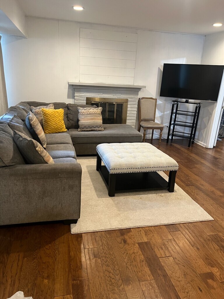 Step into comfort and charm with this fully furnished ranch-style home, thoughtfully designed for both relaxation and convenience. Living Spaces: Cozy living room featuring a beautiful fireplace—perfect for relaxing evenings. Open and bright layout with hardwood floors throughout the main floor, giving the home a warm and elegant feel. Kitchen: A lovely, updated kitchen with ample cabinet space and stainless steel appliances. Plenty of storage for all your cooking essentials, with modern finishes that make meal prep a joy. Bedrooms & Bathrooms: Comfortable furnished bedrooms ready for move-in—just bring your suitcase! Well-maintained bathrooms with clean finishes. Outdoors: Private backyard surrounded by mature trees and lush greenery, offering a peaceful setting for morning coffee or weekend gatherings. Space for outdoor dining, relaxation, or play. This home combines the best of style and practicality—making it ideal for professionals, families, or anyone seeking a move-in ready space in a serene neighborhood.