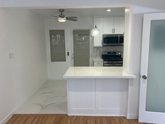 Rare rental opportunity - not to be missed. Be the first tenant to live in this newly and fully remodeled unit. First floor unit with 1 Bedroom/1 Full Bathroom in four-plex with private entrance. Indoor space is approximately 600 square feet. In addition, there is a private outdoor space that is ideal for container planting and/or barbeque. Windows furnished with beautiful woven roman shades. Hardwood floors in living room and bedroom. New heat and air conditioning, plus ceiling fans in bedroom and kitchen. Fully renovated eat-in kitchen with quartz counters and new porcelain tile. New stainless-steel sink, refrigerator, range, microwave and dishwasher. New bathroom with marble counters and deep soaking tub. All new electric and plumbing. Laundry room on premises, shared by four units. Wired in wall for cable, internet and telephone. One assigned parking spot on property. Additional permit parking available on Hyperion. Excellent location within a 2-minute walk to stores and restaurants on Sunset Junction and weekly Farmers' Market. Close to downtown Los Angeles and Echo Park. Close to Silver Lake reservoir. Will consider one small pet. Security deposit required, equal to 1 month rent. Additional security deposit required for pet. Credit check and references required. Monthly Rent: $3,150. 1-year lease minimum. Water and Gardening Included. Shown by appointment.