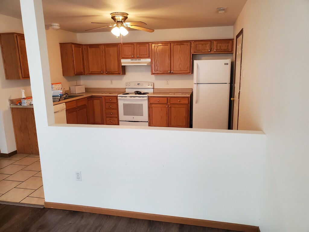 Call Tammy to see OPEN FLOOR PLAN—PLENTY OF STORAGE (2 blocks North of Golf Course) We keep our apartments PET FREE for those with allergies. (no exceptions) No smoking on premises. (insurance requirement) 2 Bedrooms (Vaulted Ceiling in Master Bedroom) 2 Full Bathrooms (Very spacious) Large Kitchen with Oak Cabinets A lot of walk-in closet storage space Quality Appliances - Stove, Range Hood, Refrigerator, Dishwasher (microwave not included) Washer & Dryer hookups Ceramic Tile floors in Kitchen, Baths & Hallways Vaulted Ceiling Living Room - Vinyl planking floor Ceiling Fans (Living Room –Bedrooms) Wired for Cable TV & Internet 36” Wide doors (Except for Master Bathroom) Avail. most units Patio (In different locations depending upon the unit) 2 Car Garage - Storage area in Garage - Garage Door Openers Mowing included - Front Storm door (Snow removal not included-seldom needed)