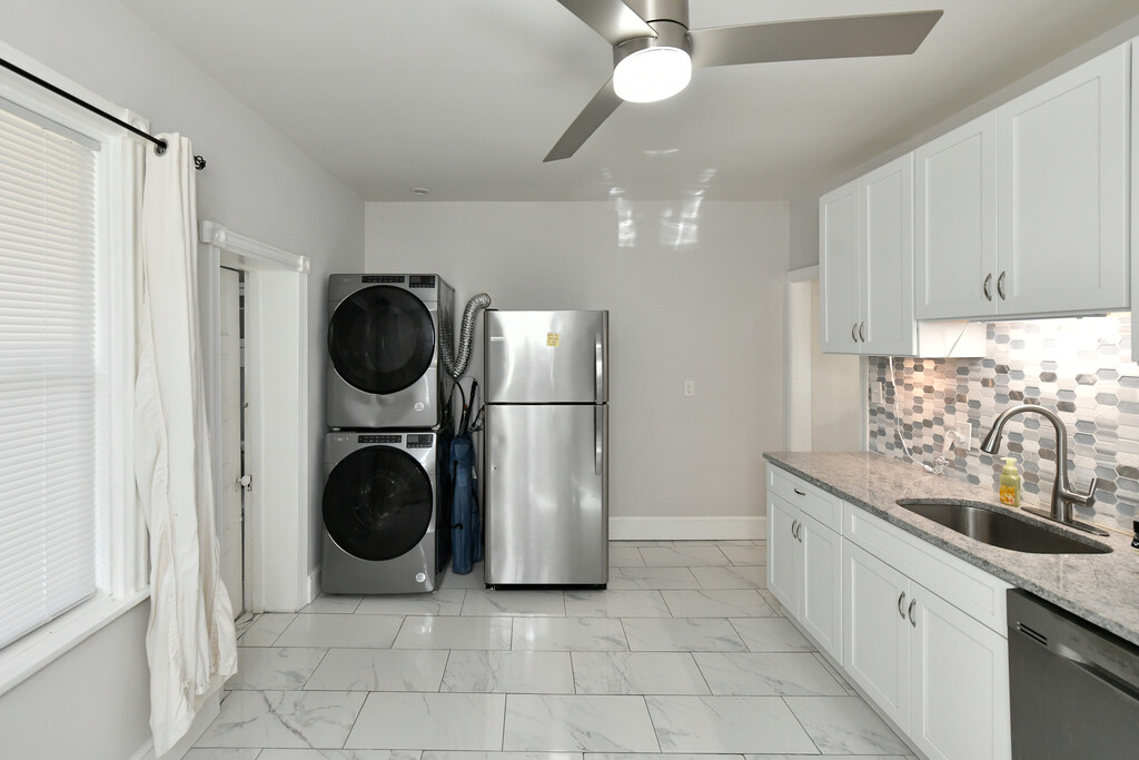 Beautiful 2BD/1BA Duplex Apartment in Prospering Wilmington Neighborhood! Discover your next home in this cozy, newly renovated 2-bedroom, 1-bathroom first floor apartment. Key Features: Eat-In Kitchen with bright white cabinets, granite countertops, and stainless steel appliances, including a refrigerator, dishwasher, electric stove/oven which features an air fryer, and a full washer/dryer conveniently located in the kitchen. Elegant Bathroom featuring beautiful marble tile. Hardwood flooring throughout the living room and bedrooms adds warmth and sophistication. Remote-controlled lighting and ceiling fans in the living room, bedrooms and kitchen for comfort and ease. Enjoy the large backyard, perfect for relaxation or entertaining, with both front and back porches to take in the charming neighborhood vibes. This apartment offers a perfect blend of comfort, style, and convenience. Don’t miss your chance to call this first floor apartment your new home! Schedule a viewing today!