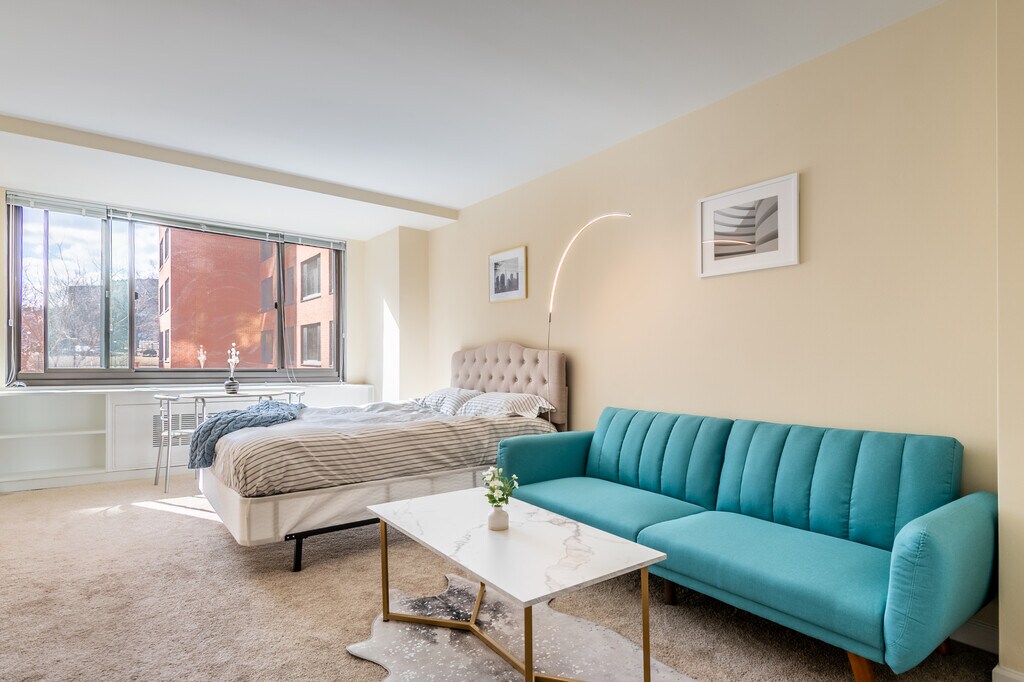 * Furnished & All utilities and high speed wifi included! This apartment is a dream come true for students, interns, and traveling professionals. It provides all the flexibility and amenities you need. * * Flexible lease term anywhere from 3 to 12 months. Rent for 12 months is $50 less/month. One month's security deposit required. Parking spot MAY be available additional $150/month. Please inquire. * 2 blocks away from Rosslyn metro with easy access to DC by metro, bus, or on foot! Walk over Key Bridge to Georgetown where a plethora of restaurants, bars, shops, and the trendiest spots in town await you. Full-service building with security, front desk, laundry, gym, outdoor pool (open during summer), grill, and lawn. There are onsite convenience store and salon. Laundry room is in the building. This apartment comes with a huge walk-in closet, full-size fridge, queen bed, small dining table, smart TV, comfy couch, and a coffee table. It's the guest's responsibility to register with the building in person with a photo ID and pay a registration fee (currently $50 but the building may increase it in the future) to get a unique fob for building amenity access. Bring a check as cash is not accepted.