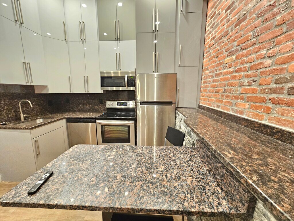 JAW-DROPPING LOFTS NEAR KENMORE! NO FEE! FLEXIBLE START DATE! OPEN LAYOUT 1ST LEVEL: KITCHEN, LIVING AREA OFFICE AREA + BATH OFF ENTRY LANDING 2 LEVEL: SEPARATE BR, CLOSET SOARING VAULTED CEILINGS EXPOSED BRICK GRANITE/STAINLESS KITCHEN W BUILT-IN GRANITE DINING AREA UNREAL CUSTOM KITCHEN STORAGE- sleek, modern floor-to ceiling kitchen cabinets HARDWOOD FLOORS THROUGHOUT OPEN LAYOUT GORGEOUS UPDATED BATH LAUNDRY IN BLDG PARKING FOR RENT $250 SUPERMARKET, RESTAURANTS, TRAIN @ FRONT DOOR!