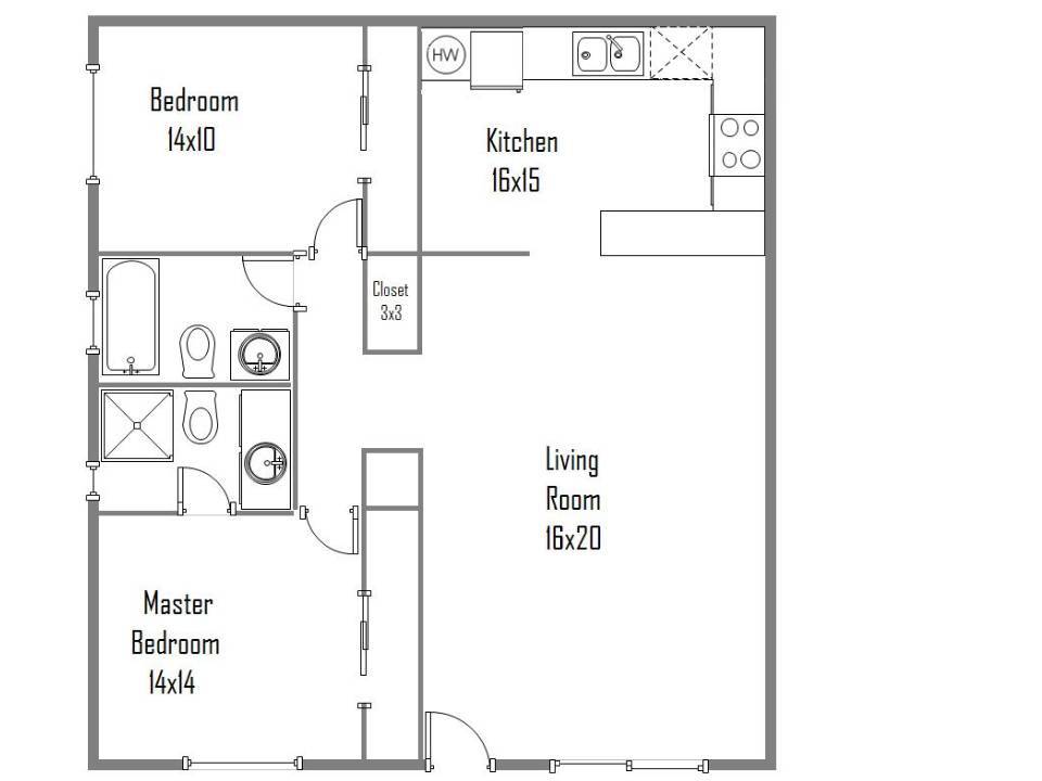 Spacious single story 2 bed/1.75 bath apartment with easy freeway access. Close to downtown and University. Combined verifiable gross monthly income of adult applicants must be at least three times rent. No smoking, satellite dishes or pets. Water, trash and sewer are included. Photos show multiple apartments within the complex. Floor Plan measurements are approximate. We participate in the Crime Free Multi-Housing program.