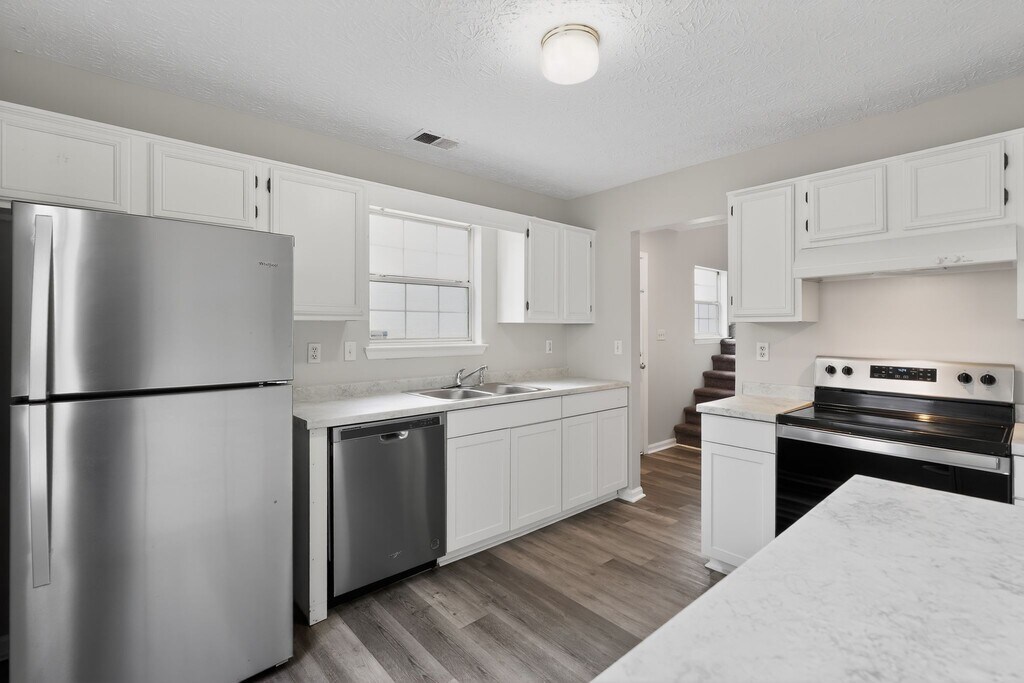 Freshly painted inside with designer paint. Luxury vinyl plank flooring enhances the first floor, while plush carpet provides comfort in the upstairs bedrooms. Convenient upstairs laundry hookups add everyday ease. The primary bathroom includes a double vanity, and the full kitchen offers abundant cabinetry and generous counter space with all stainless steel appliances. The spacious, open living room features a fireplace and opens to a private back deck perfect for relaxing or entertaining. Conveniently located near I-75, Kennesaw State University, and Town Center, with tons of shopping and restaurants near by. This home offers both comfort and convenience. As a bonus, trash and recycle service is included in the rent! Tours by appointment only. Call today to schedule your showing! Minimum lease term 1 year. Tenant will need to sign up for water and electricity. Credit (650+), background, and income (at least 2.5x monthly rent) verification required. Application review is $45/adult (separate from credit and background check from online applications). No smoking in unit. Pet allowed upon approval.