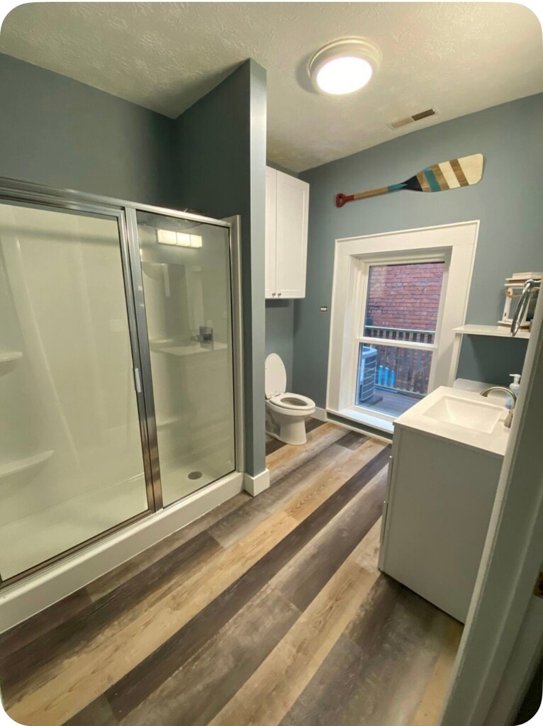Original hardwood floors and unique frosted glass wall panels make this space unique and impressive. This large 1,000 ft apartment gives you plenty of room to spread out. A Large living room, deluxe kitchen, and luxury bath are all included. Enjoy the Black Stainless appliances with dishwasher, built in microwave, filtered Ice & water, and large kitchen island. Very efficient heating and cooling this unit has very low utility bills. Water softener with salt service included. Stacked front load washer & dryer. Move right in.